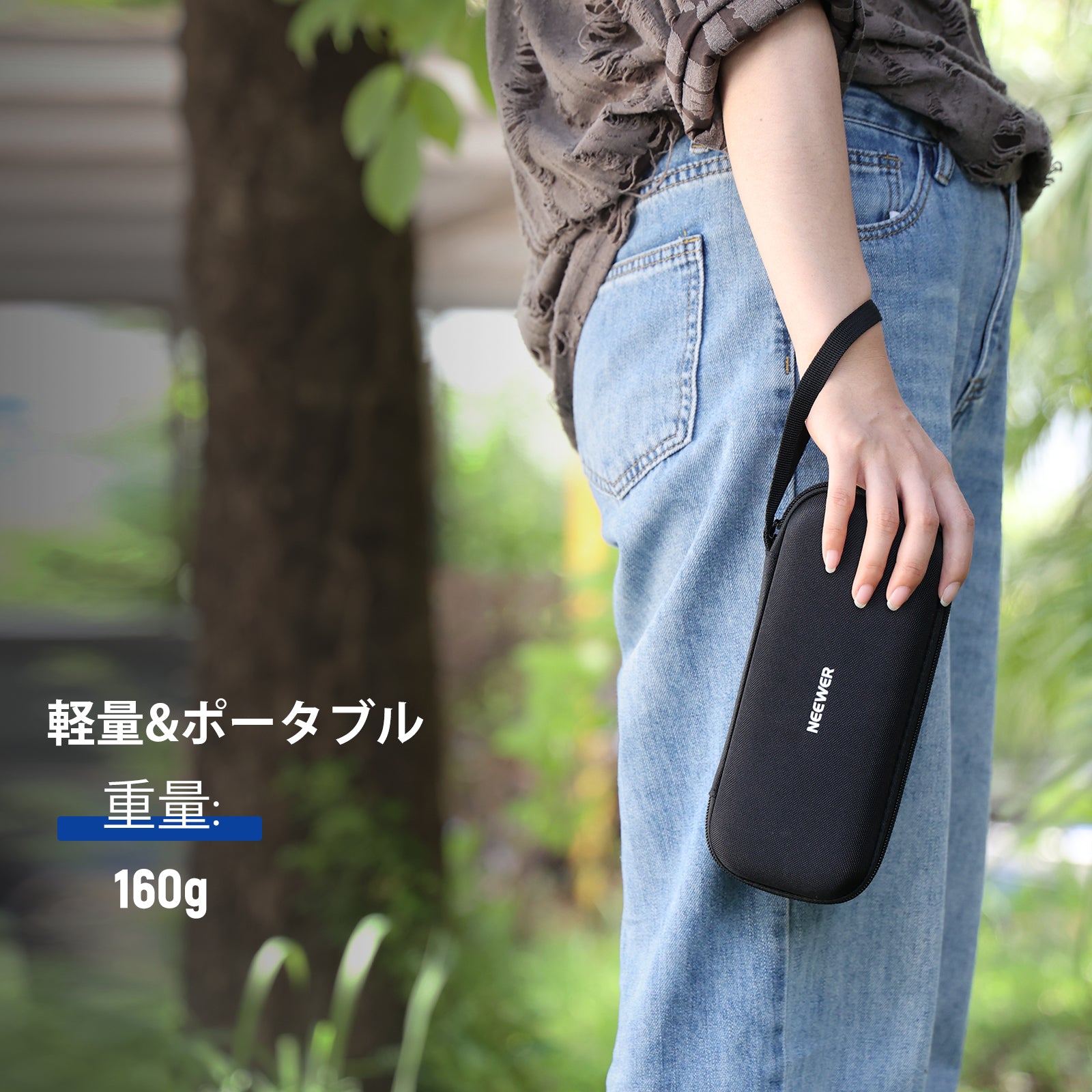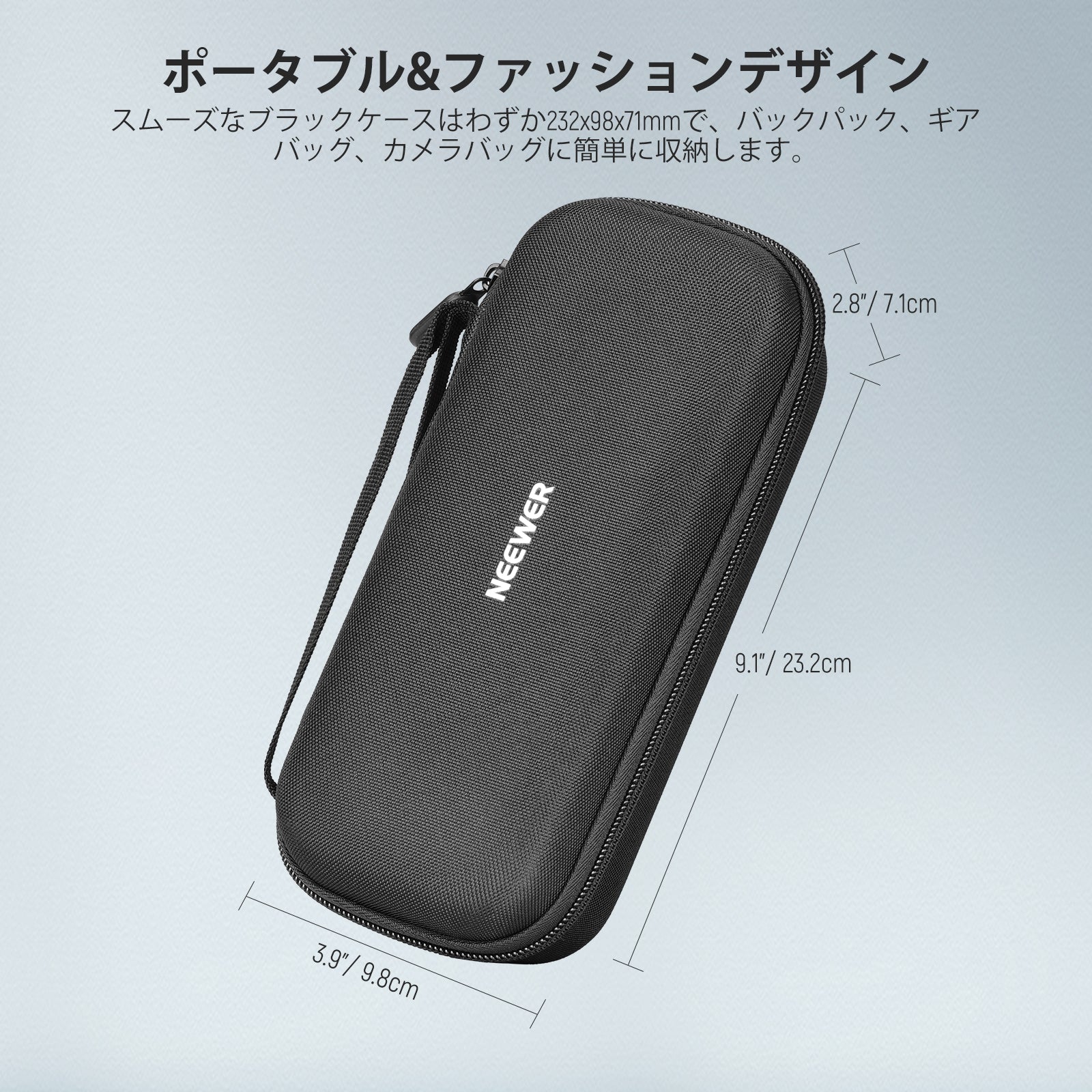 【ポータブル&スタイリッシュデザイン】ブラックケースは、わずか9.1"×3.9"×2.8"(232×98×71mm)で、バックパック、ギアバッグ、カメラバッグに簡単に収まります。内蔵のリストストラップ付きで持ち運びにも便利です。