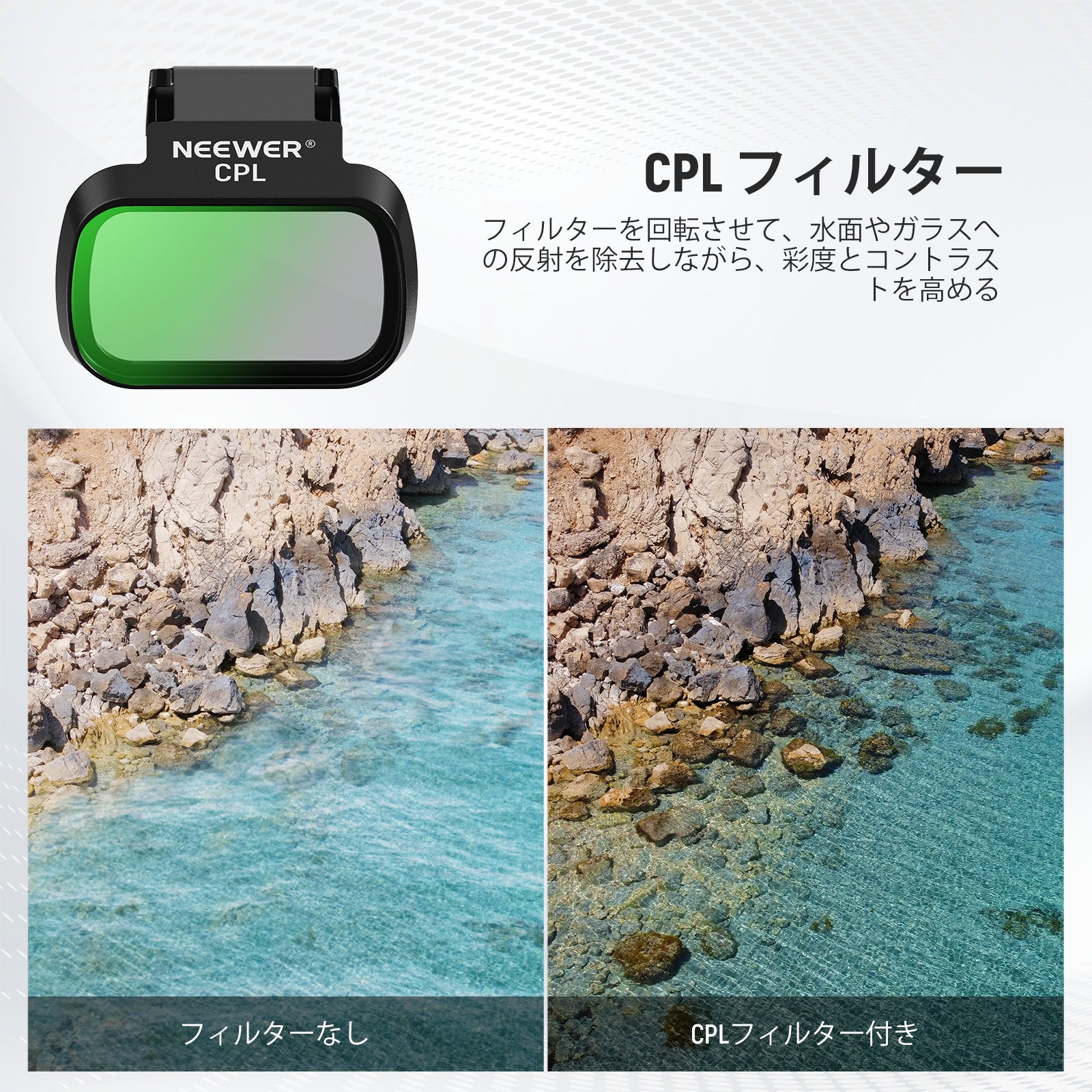 - 【鮮やかな色彩と見事な撮影】CPL偏光レンズフィルターは、水面、ガラス、その他の非金属表面からのグレアや不要な反射を低減し、最適な色再現を実現します。色の彩度とコントラストを高めて、空撮のすべてのフレームを鮮やかで印象的な傑作にします。