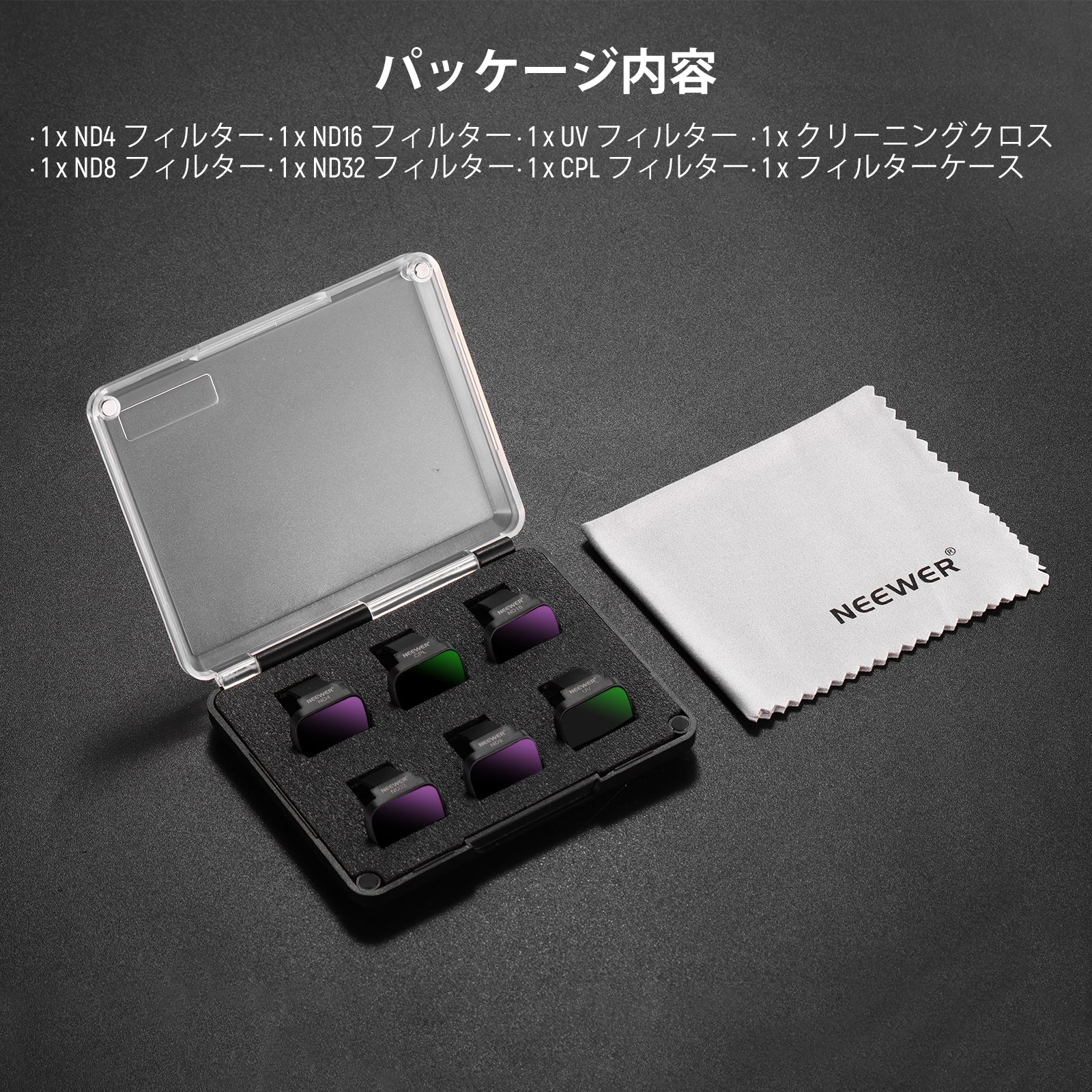 4 × NDフィルター (ND4/ND8/ND16/ND32)