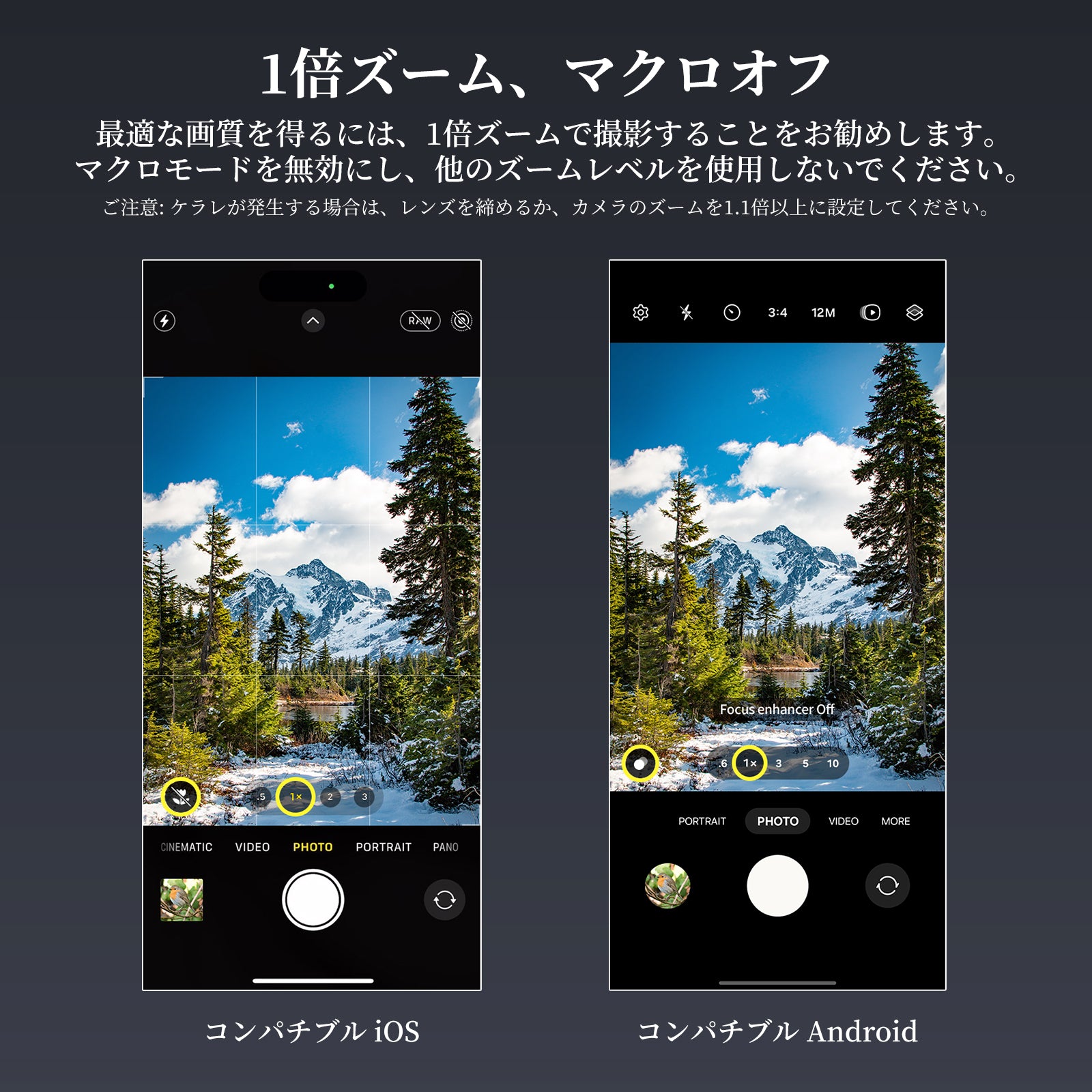【軽量&頑丈】軽量レンズアタッチメントは、アルミ合金製シェルを採用しています。ご注意: ご使用前に、メインカメラと隣接するカメラを清掃してください。ケラレが発生した場合は、レンズを締め、カメラズームを1.1倍以上に設定してください。