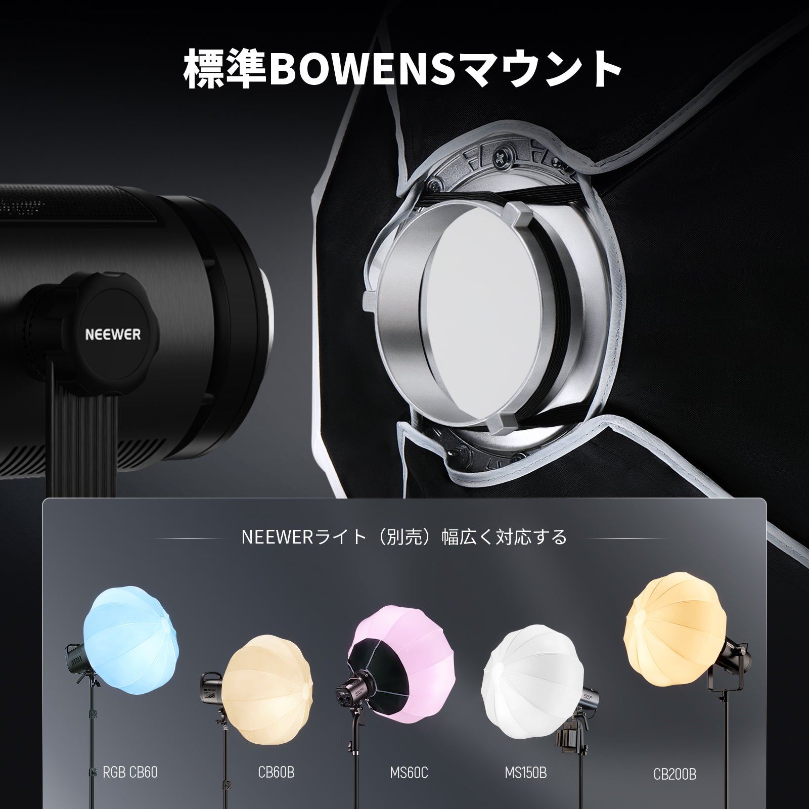 - 【軽量ナイロン合金製Bowensマウント】標準のBowensマウントは、NEEWER RGB CB60、CB60B、CB200B、MS60B、MS60C、MS150B など幅広いBowensマウント LED ビデオライトに対応します。ナイロン合金のBowensマウントにより、ソフトボックスが軽量 (27.5oz/780g) になり、持ち運びが簡単です。