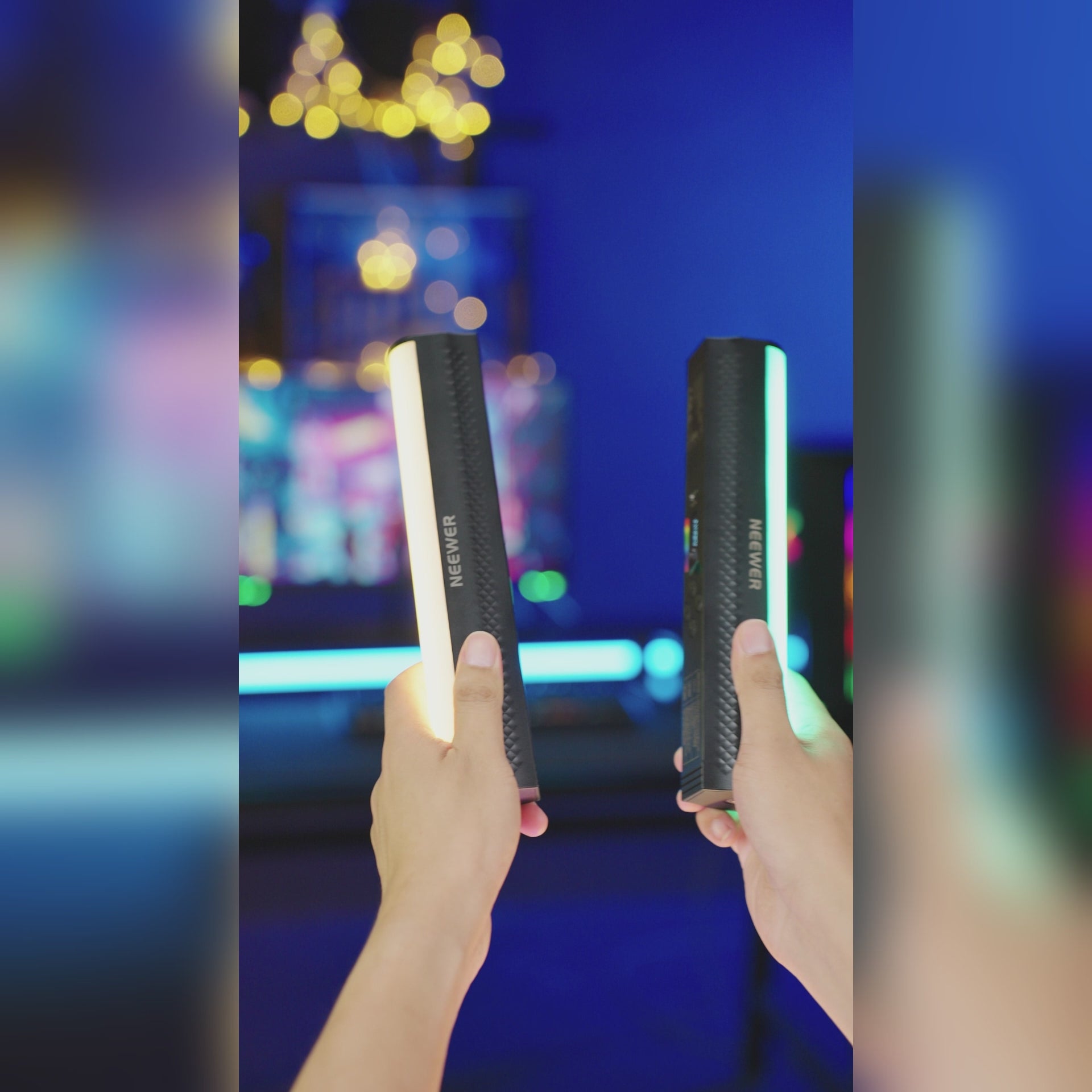 - 【多用途手持ちRGBカラフルスティックライト】NEEWER 10W RGBライトは195個の強力なLEDを搭載し、0.5mで最大照度730luxを実現し、95+CRIでちらつきやまぶしさなしに、より正確な演色性を実現します。サイズは9"x 1.6"x 1.8"/ 228 x 40 x 45mm、重さはわずか270gで、片手でグリップすることができ、カメラギア写真撮影、撮影、生放送、パーティー、結婚式、キャンプ、静物写真、スタジオ写真撮影、YouTube / TikTokビデオ録画などに最適な照明アクセサリーです。