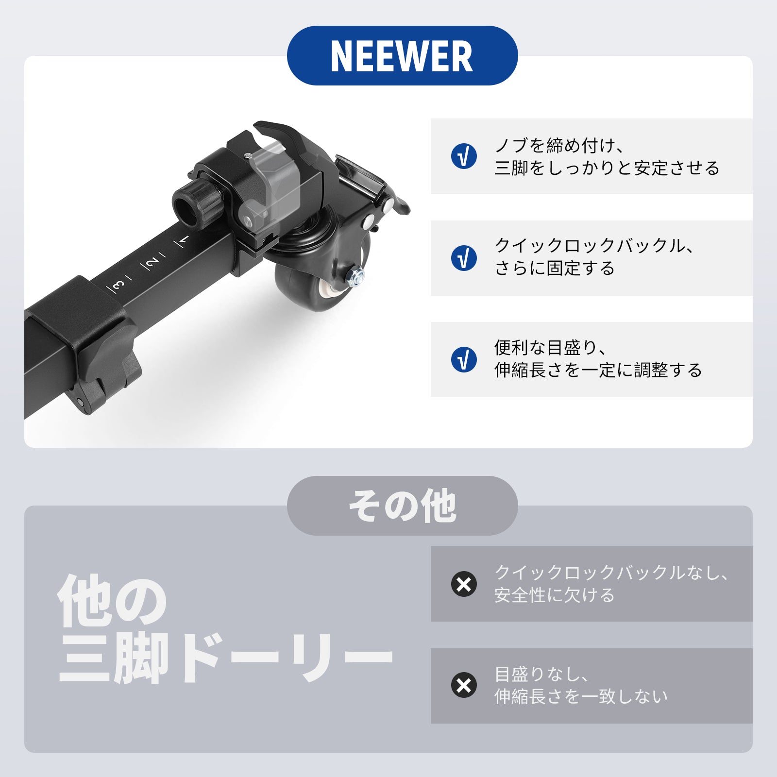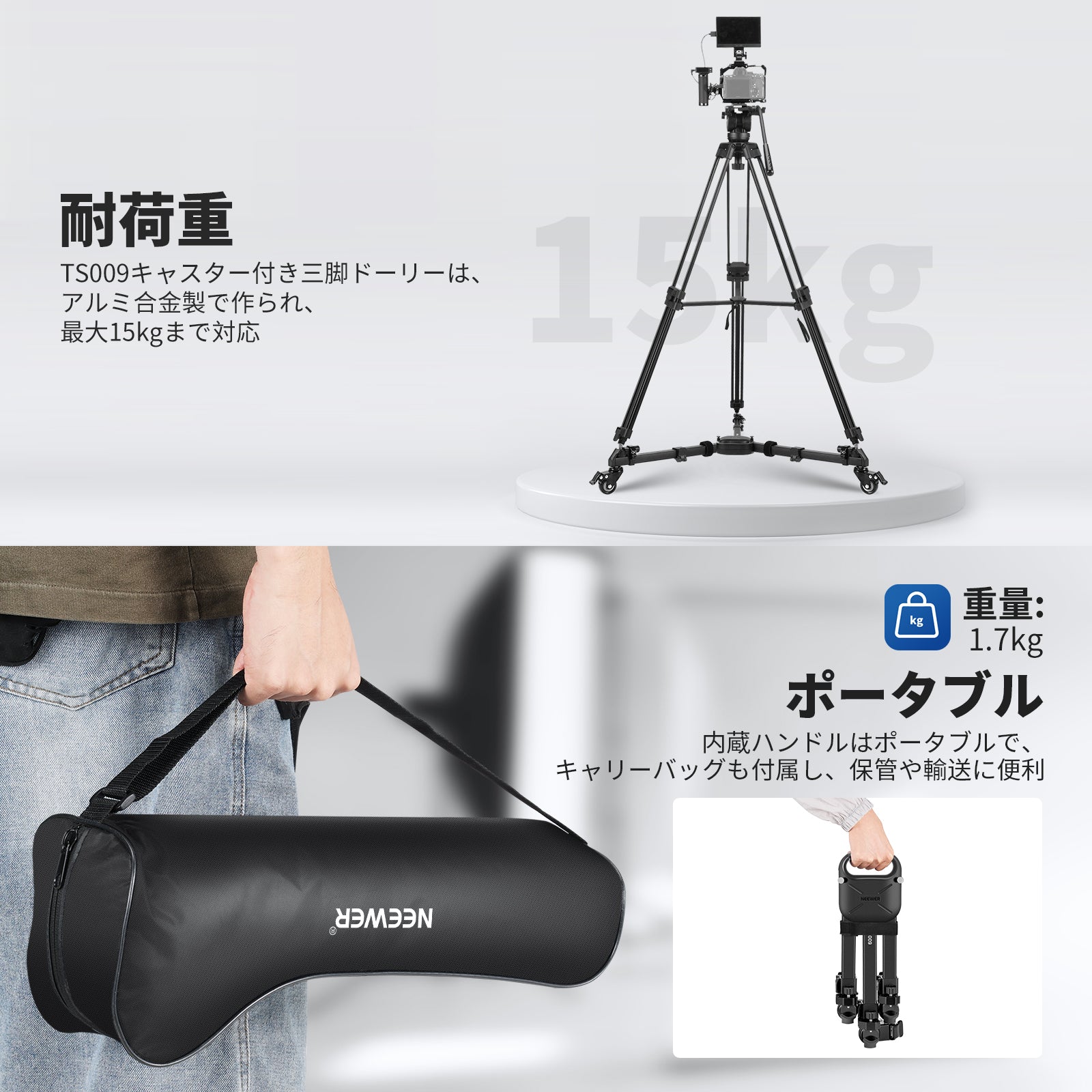 - 【ハンドル内蔵&ポータブル設計】ドリー脚ロックボタンにより、折りたたみ脚とハンドルは最小サイズに調整でき、収納や持ち運びはキャリングバッグに簡単に収納でき、外出先での撮影に最適です。