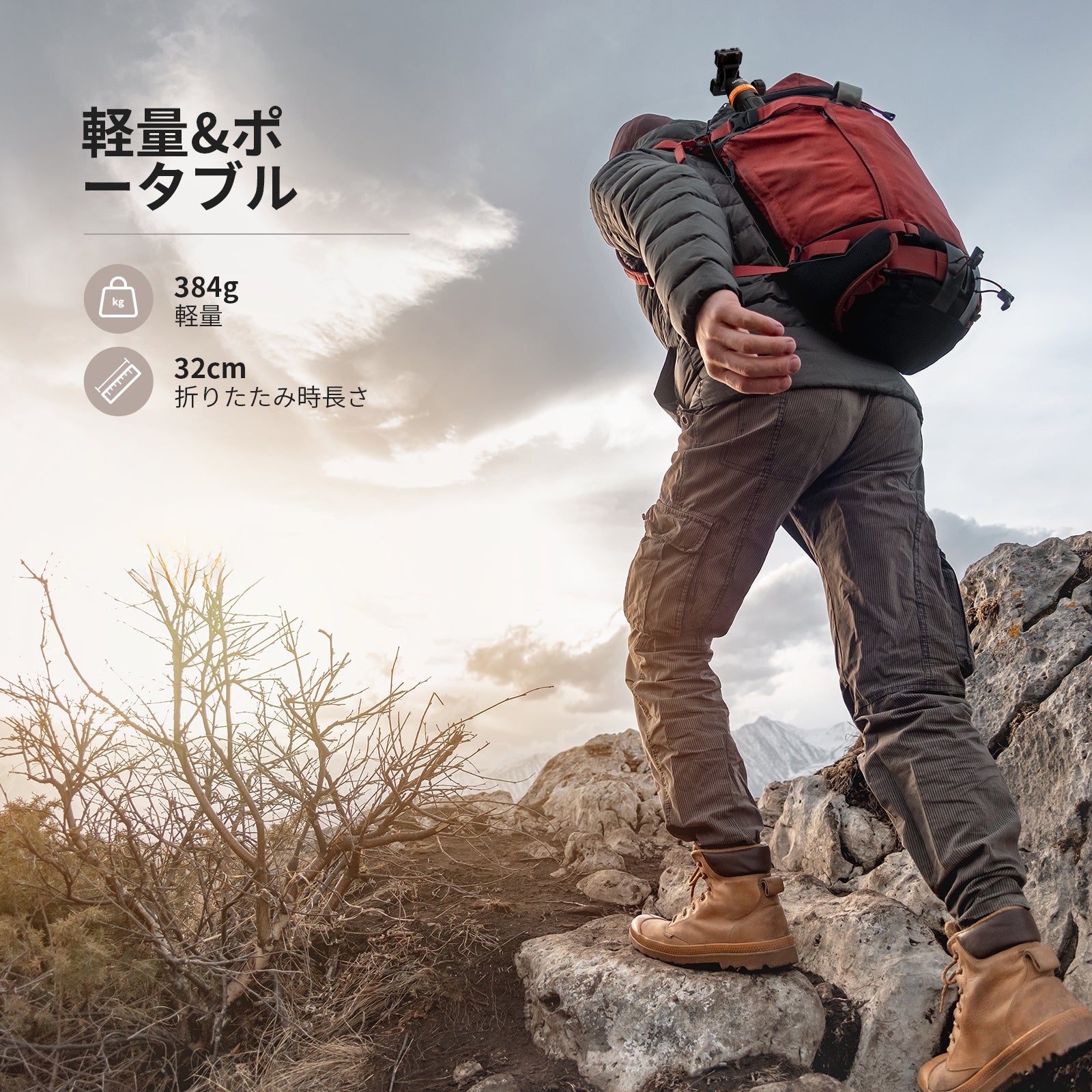 - 【軽量で持ち運びやすい】わずか384g、折りたたむと12.6インチ/32cmとコンパクトな設計で、iPhone・Androidに対応したハンドヘルド三脚式自撮り棒は、屋外での撮影や旅行時の持ち運びに便利です。コンテンツクリエイターやインフルエンサーにとって必須の撮影ギアであり、スマホカメラ用アクセサリーとして最適です。また、付属のBluetoothリモートシャッターを使用すれば、障害物のない環境で最大約33ft/10m離れた場所からでも撮影が可能です。