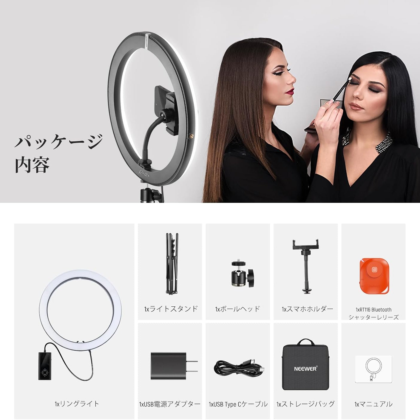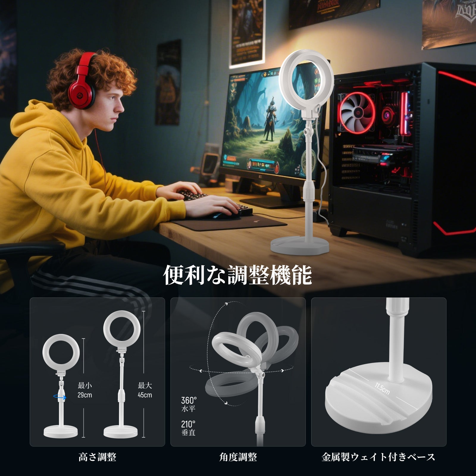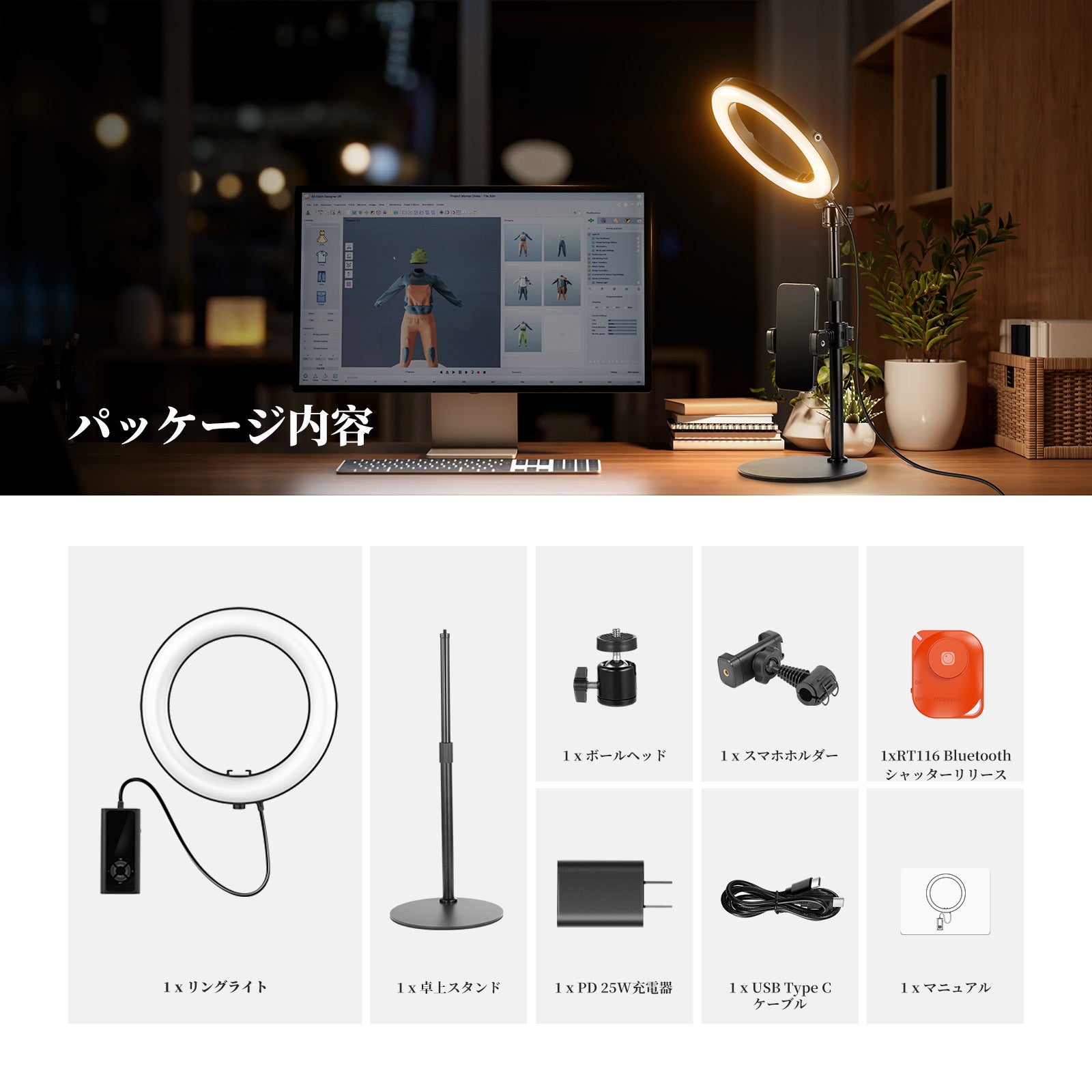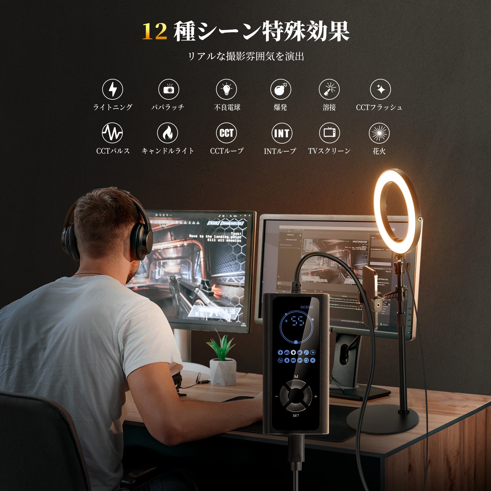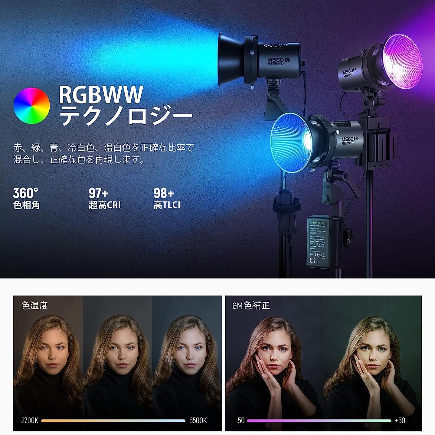 3200K~5600Kの色温度、0~100%の調光範囲、97+の高いCRI、21Wの電力、105個の暖色LED、および105個の冷色 LED を備えています。YouTubeのビデオ録画、ビデオブログ、ゲーム、ライブストリーミング、ポートレート、製品の写真撮影に最適です。