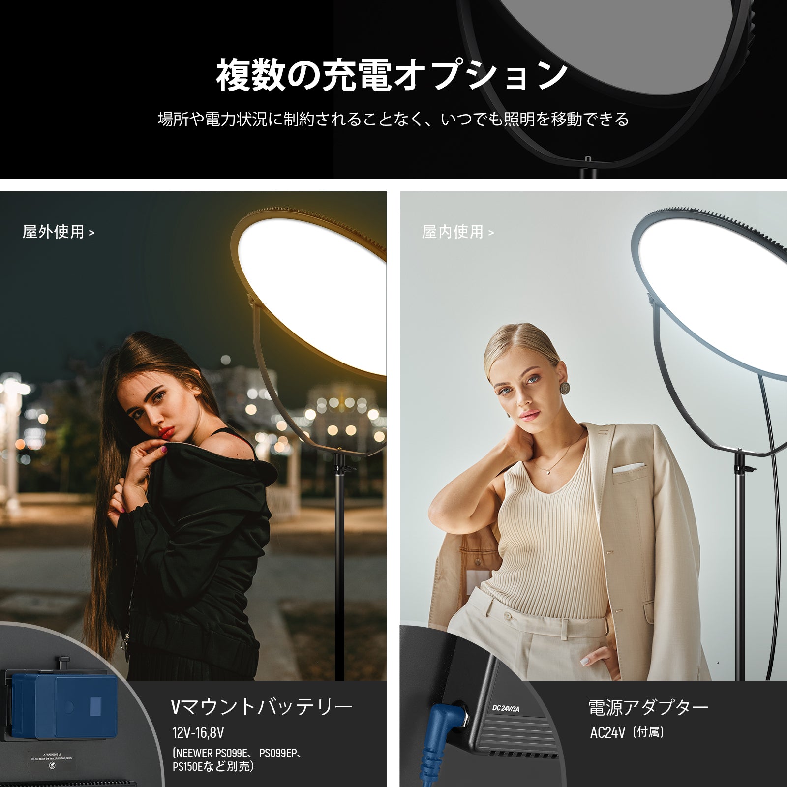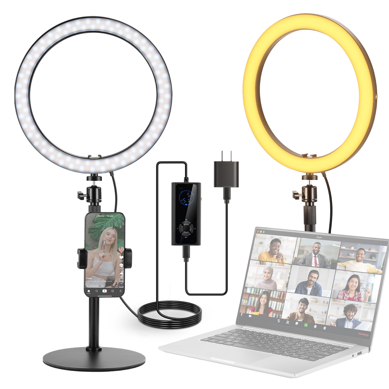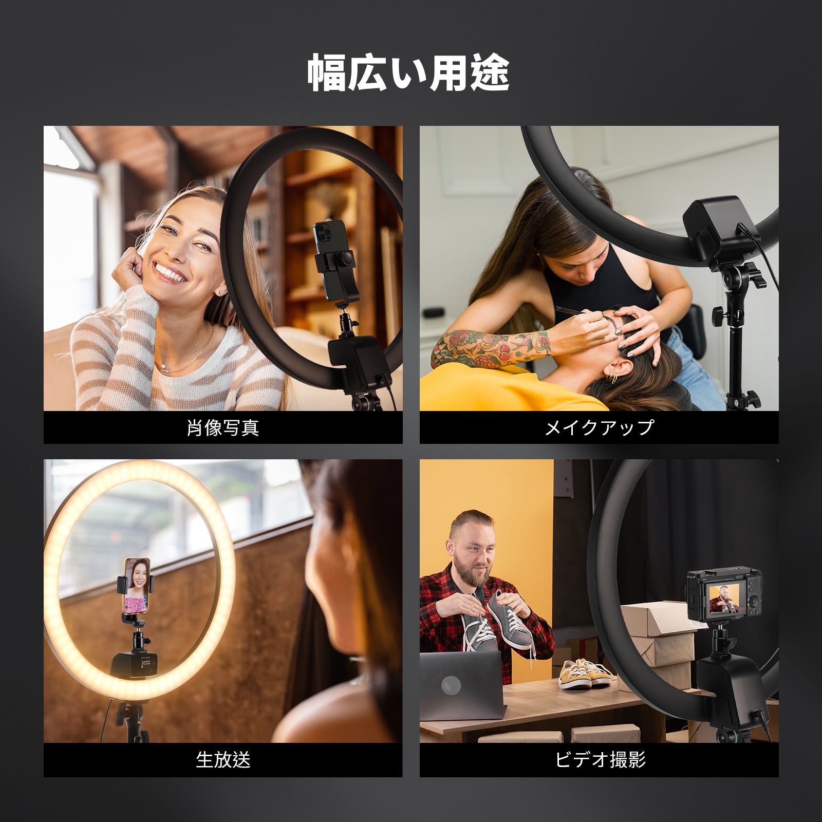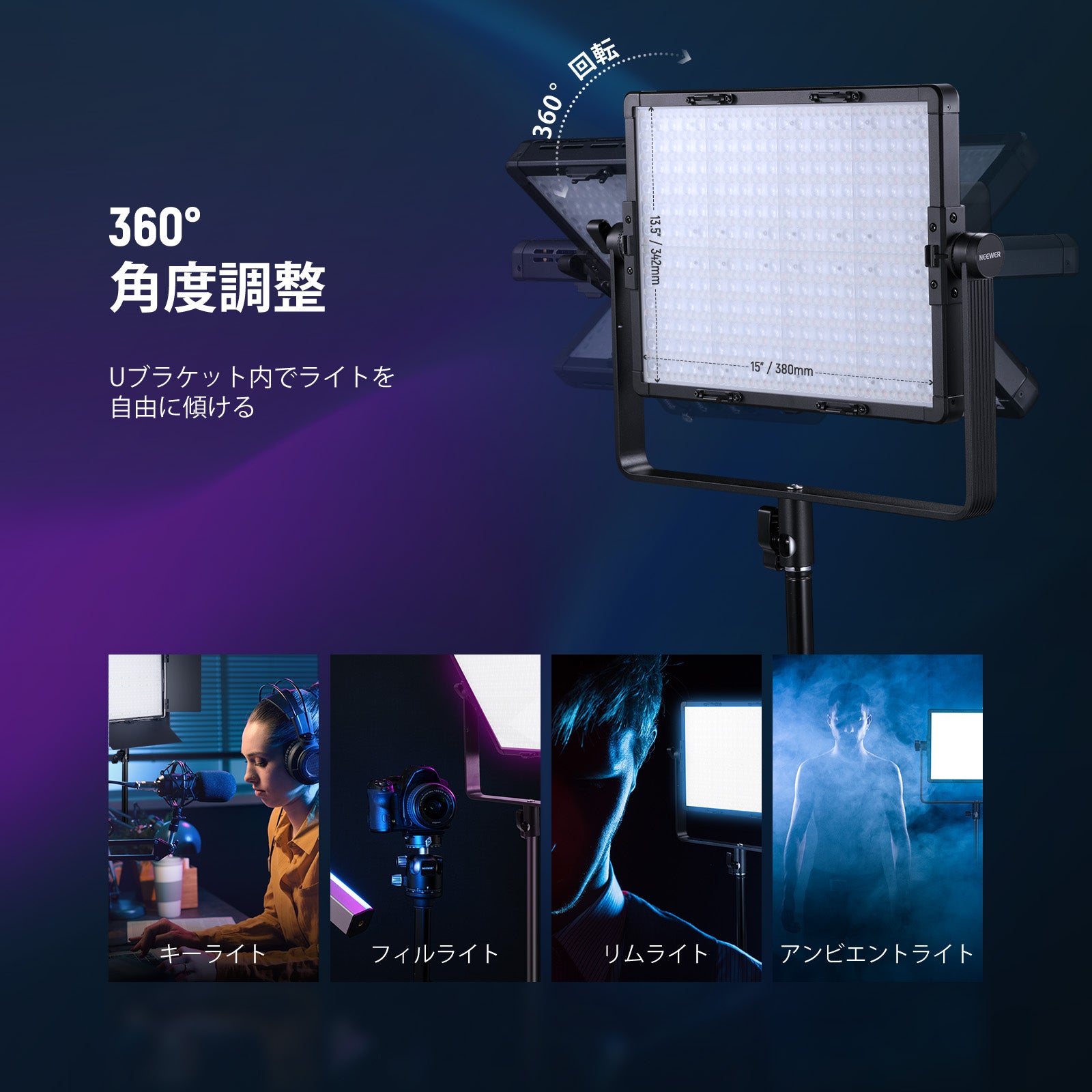 3200K~5600Kの色温度、0~100%の調光範囲、97+の高いCRI、21Wの電力、105個の暖色LED、および105個の冷色 LED を備えています。YouTubeのビデオ録画、ビデオブログ、ゲーム、ライブストリーミング、ポートレート、製品の写真撮影に最適です。