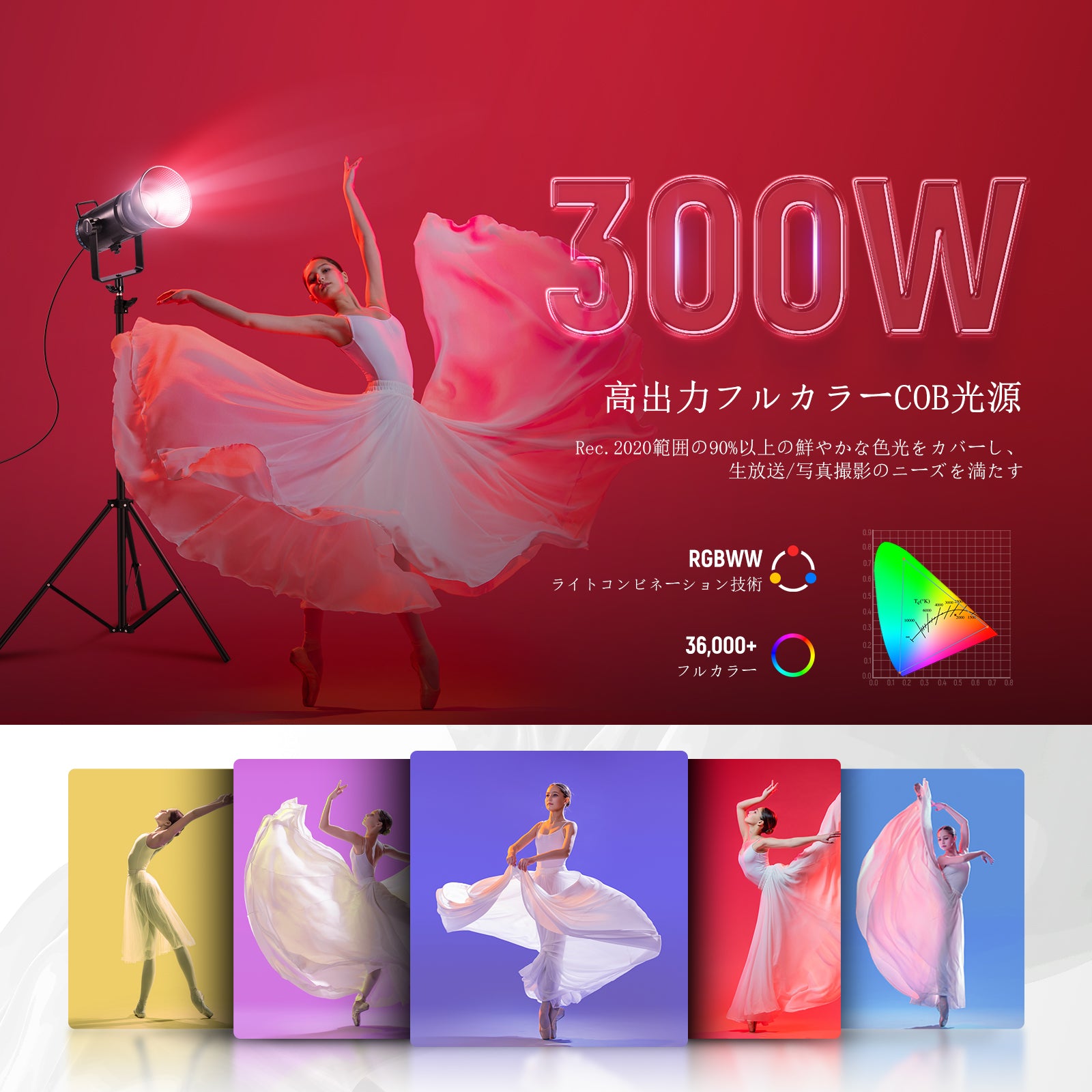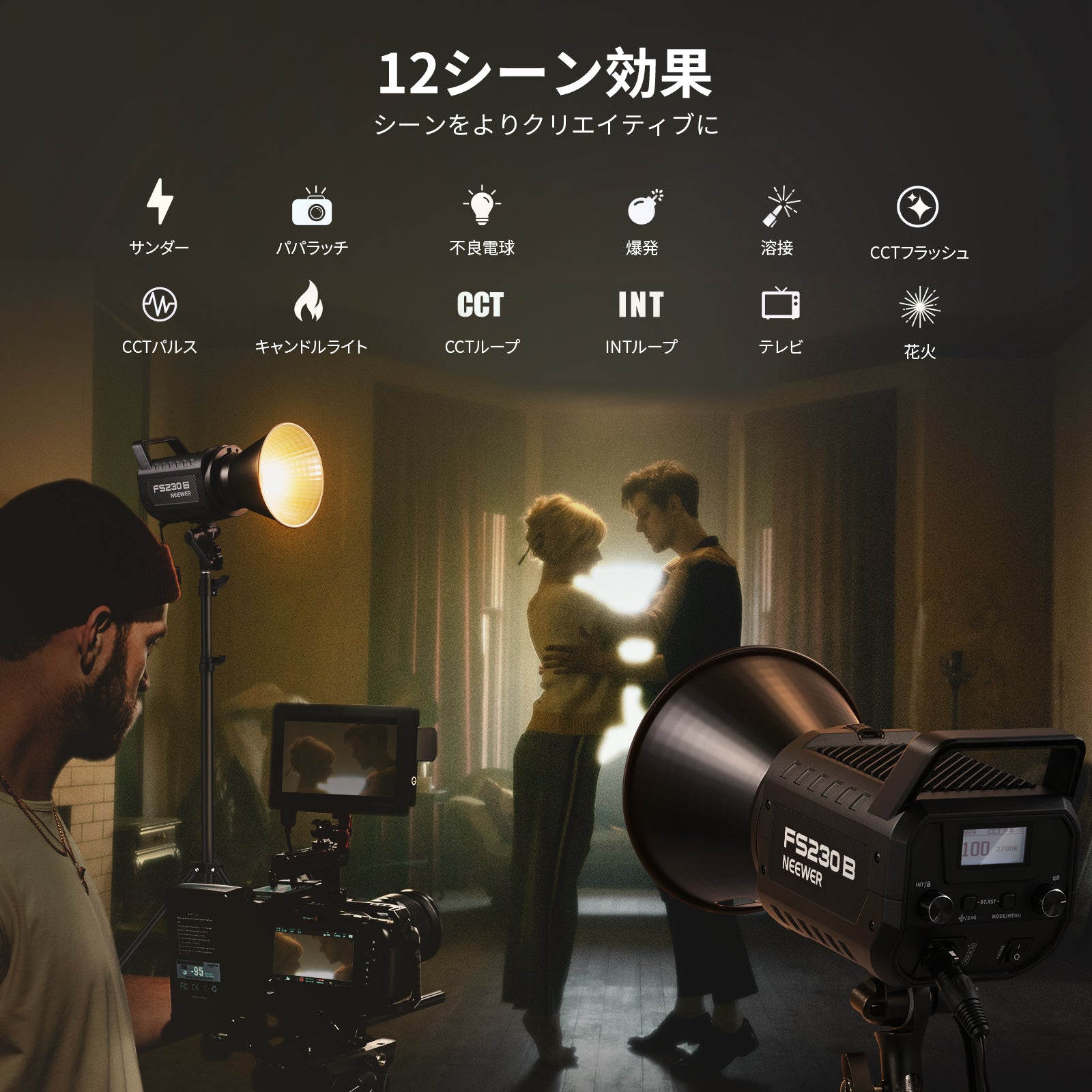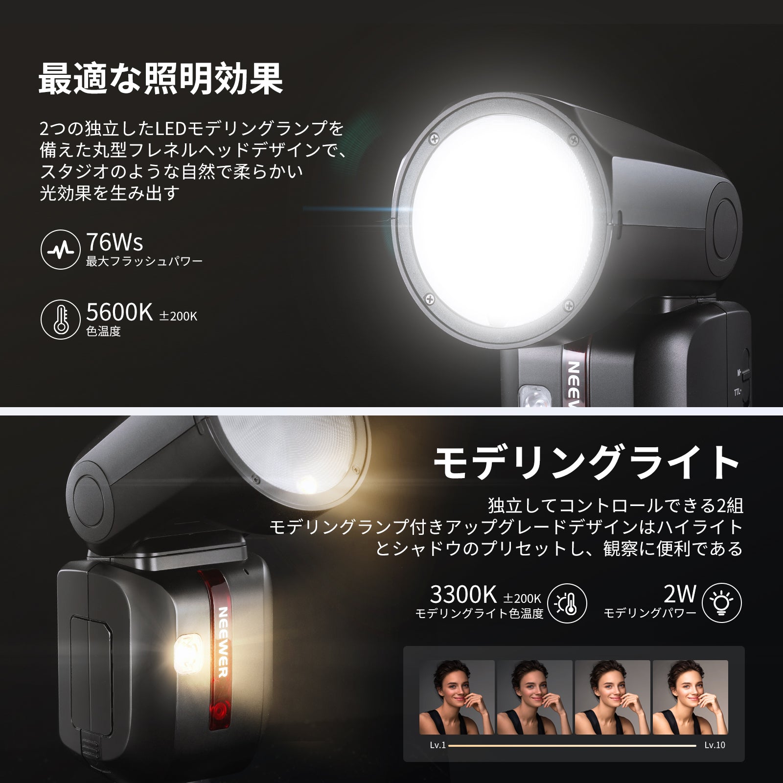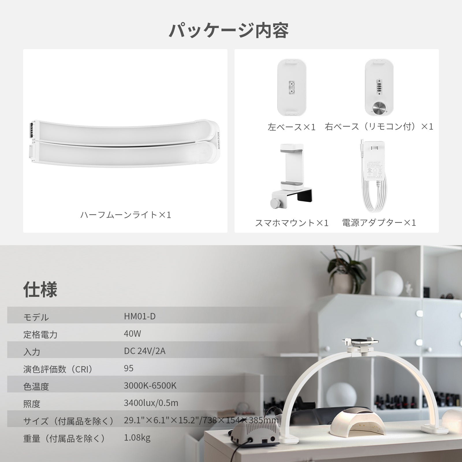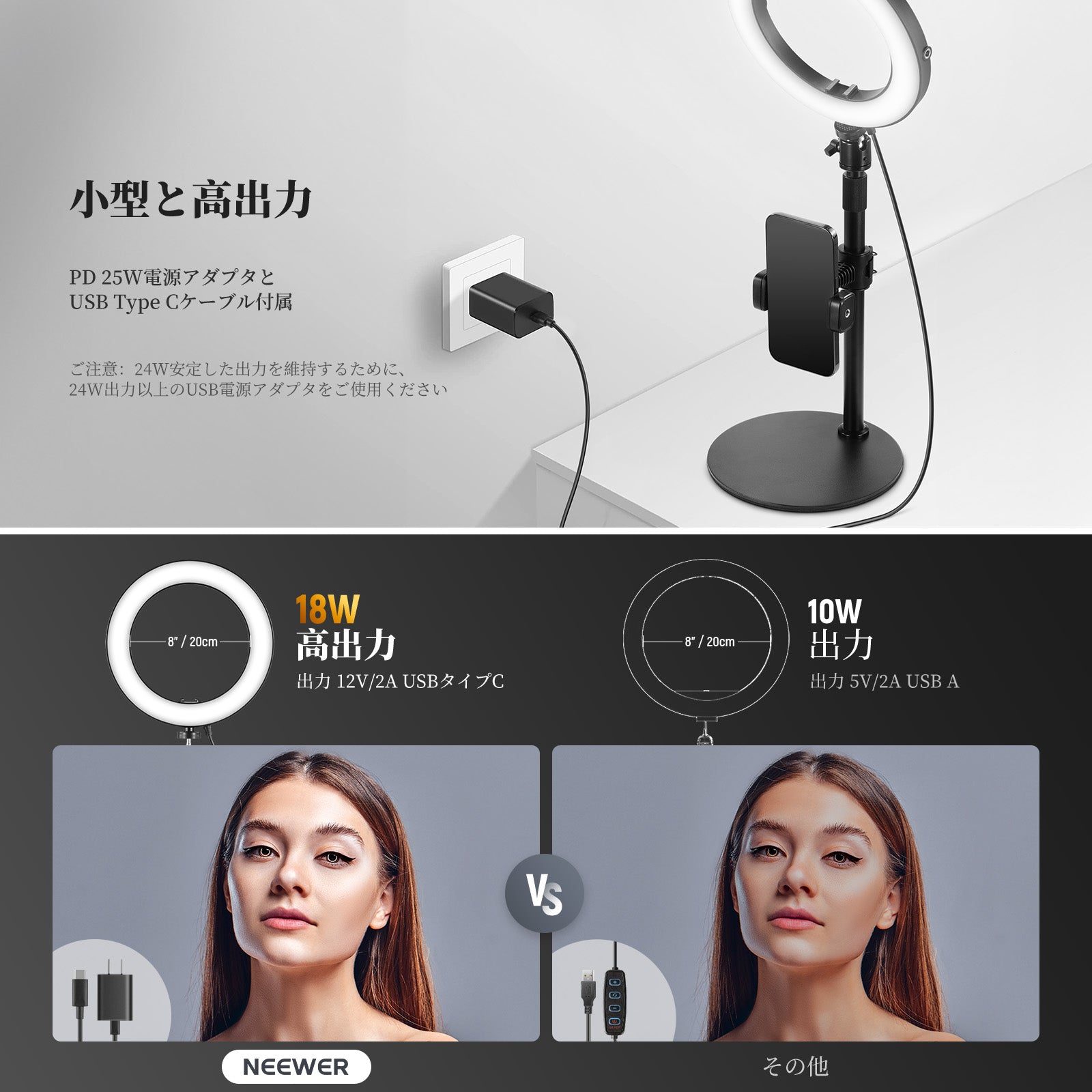 3200K~5600Kの色温度、0~100%の調光範囲、97+の高いCRI、21Wの電力、105個の暖色LED、および105個の冷色 LED を備えています。YouTubeのビデオ録画、ビデオブログ、ゲーム、ライブストリーミング、ポートレート、製品の写真撮影に最適です。