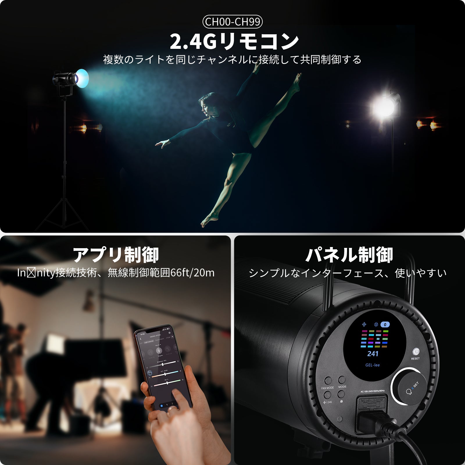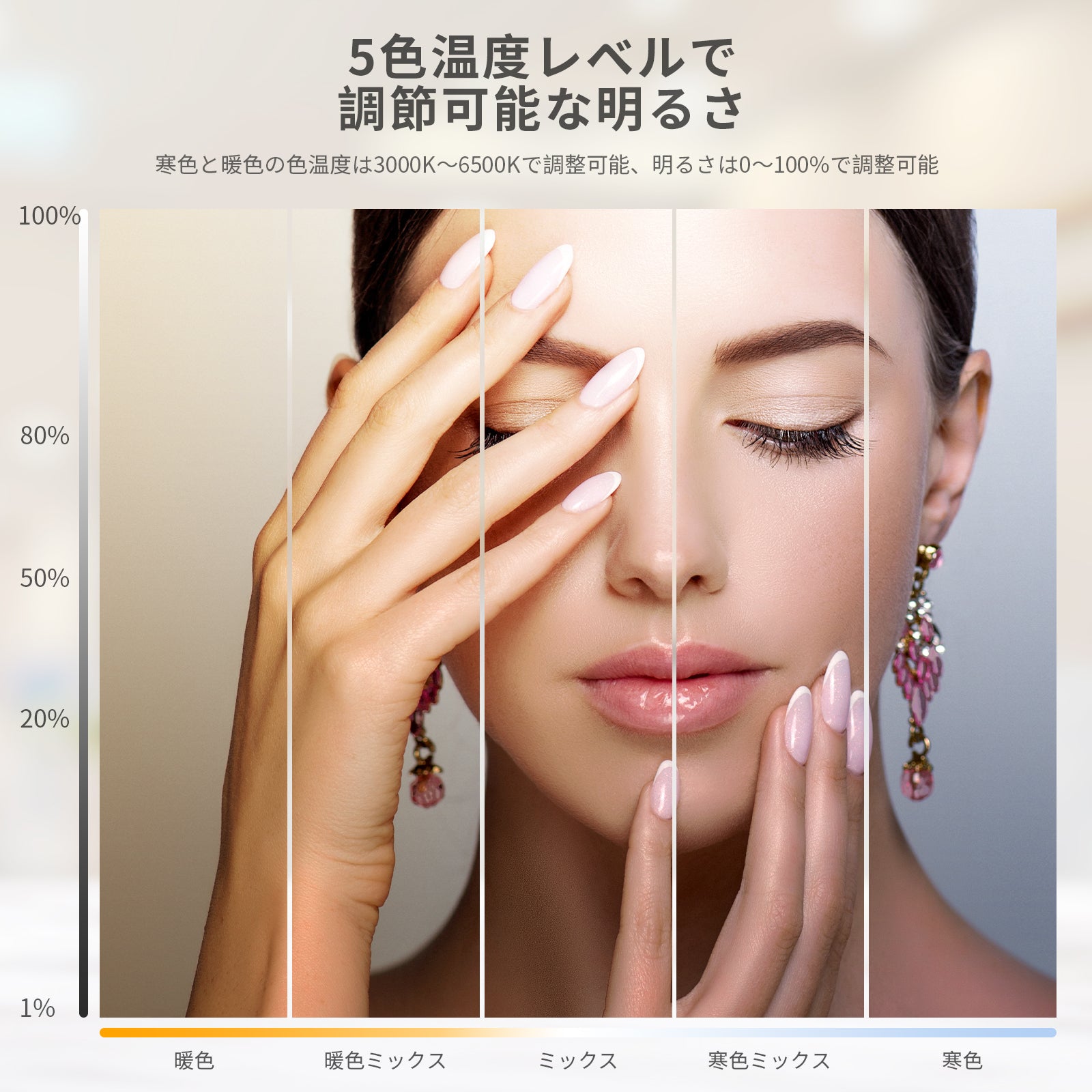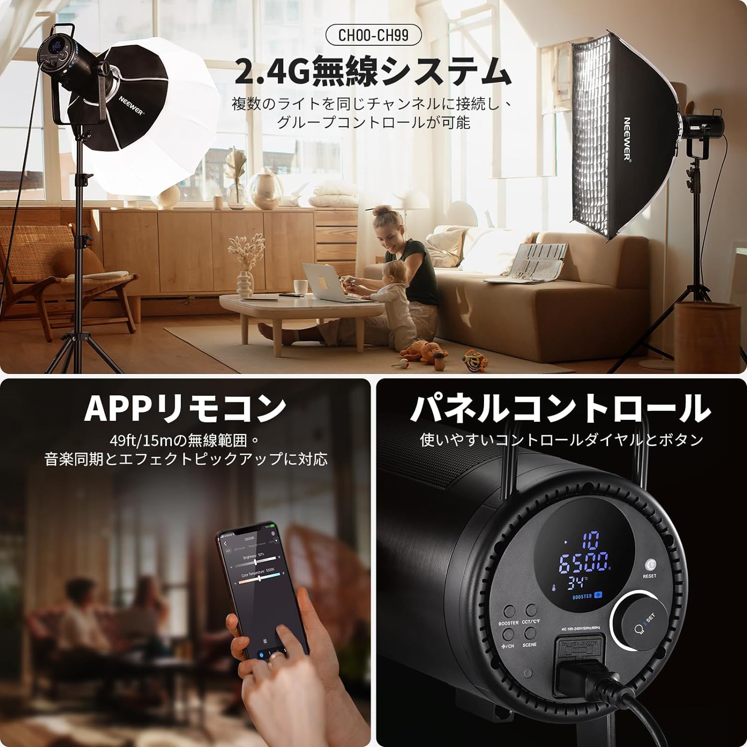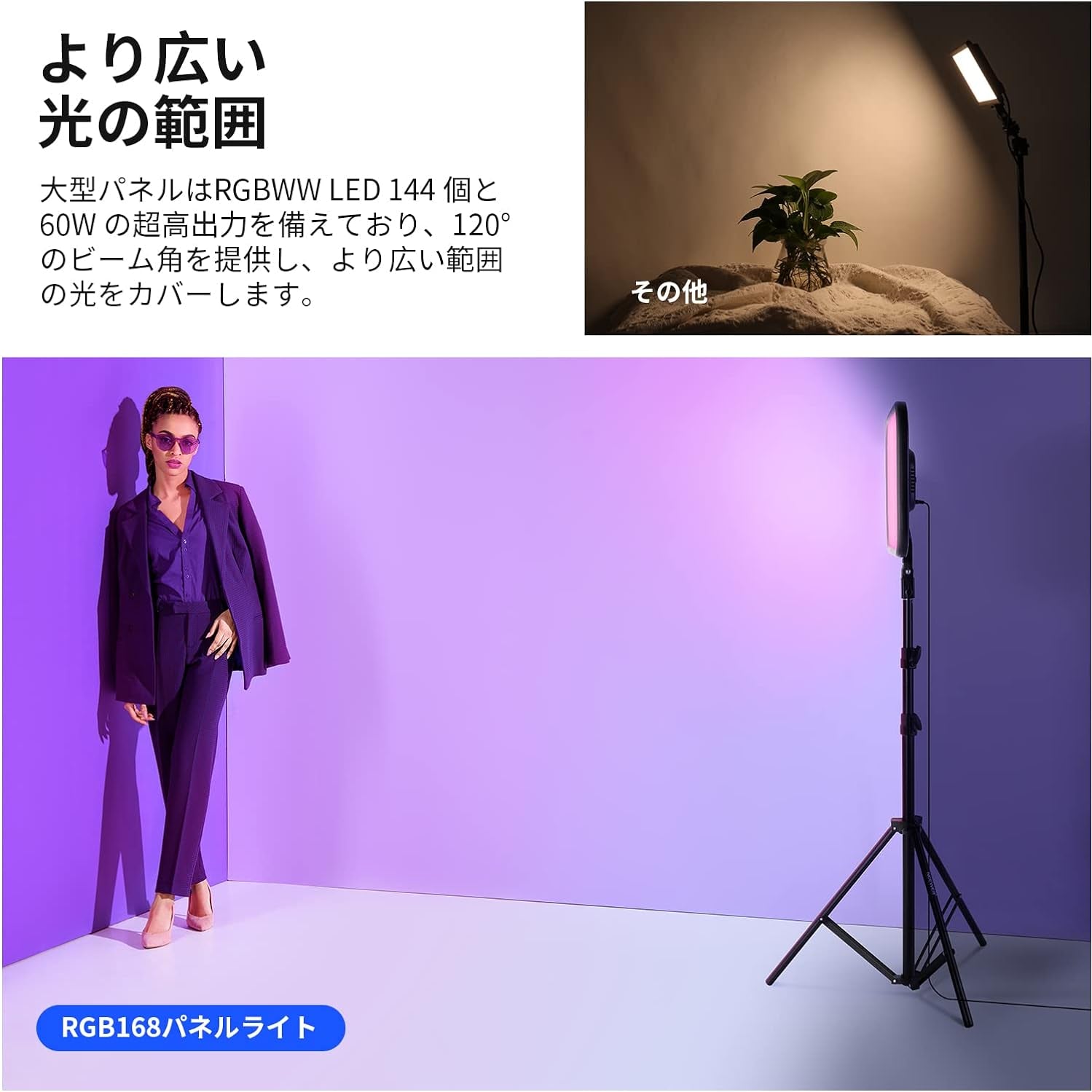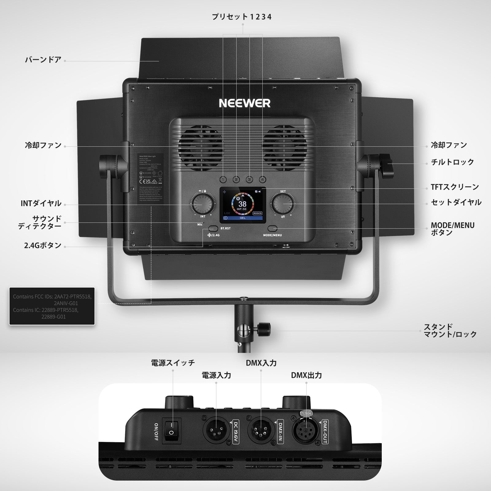 3200K~5600Kの色温度、0~100%の調光範囲、97+の高いCRI、21Wの電力、105個の暖色LED、および105個の冷色 LED を備えています。YouTubeのビデオ録画、ビデオブログ、ゲーム、ライブストリーミング、ポートレート、製品の写真撮影に最適です。