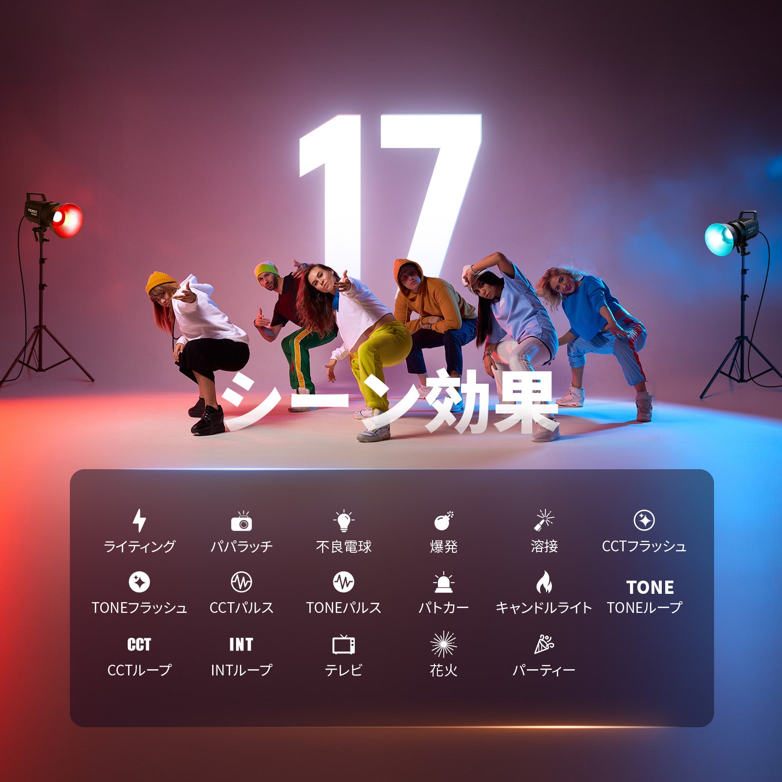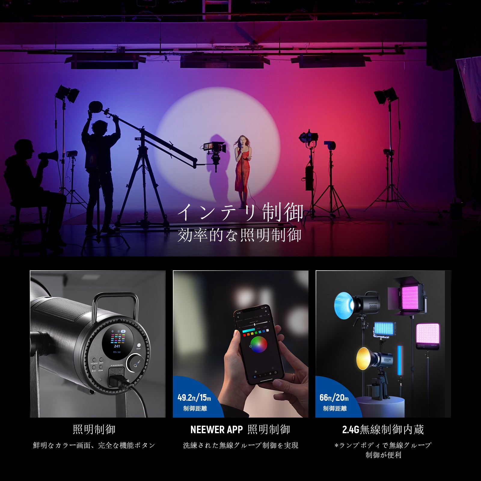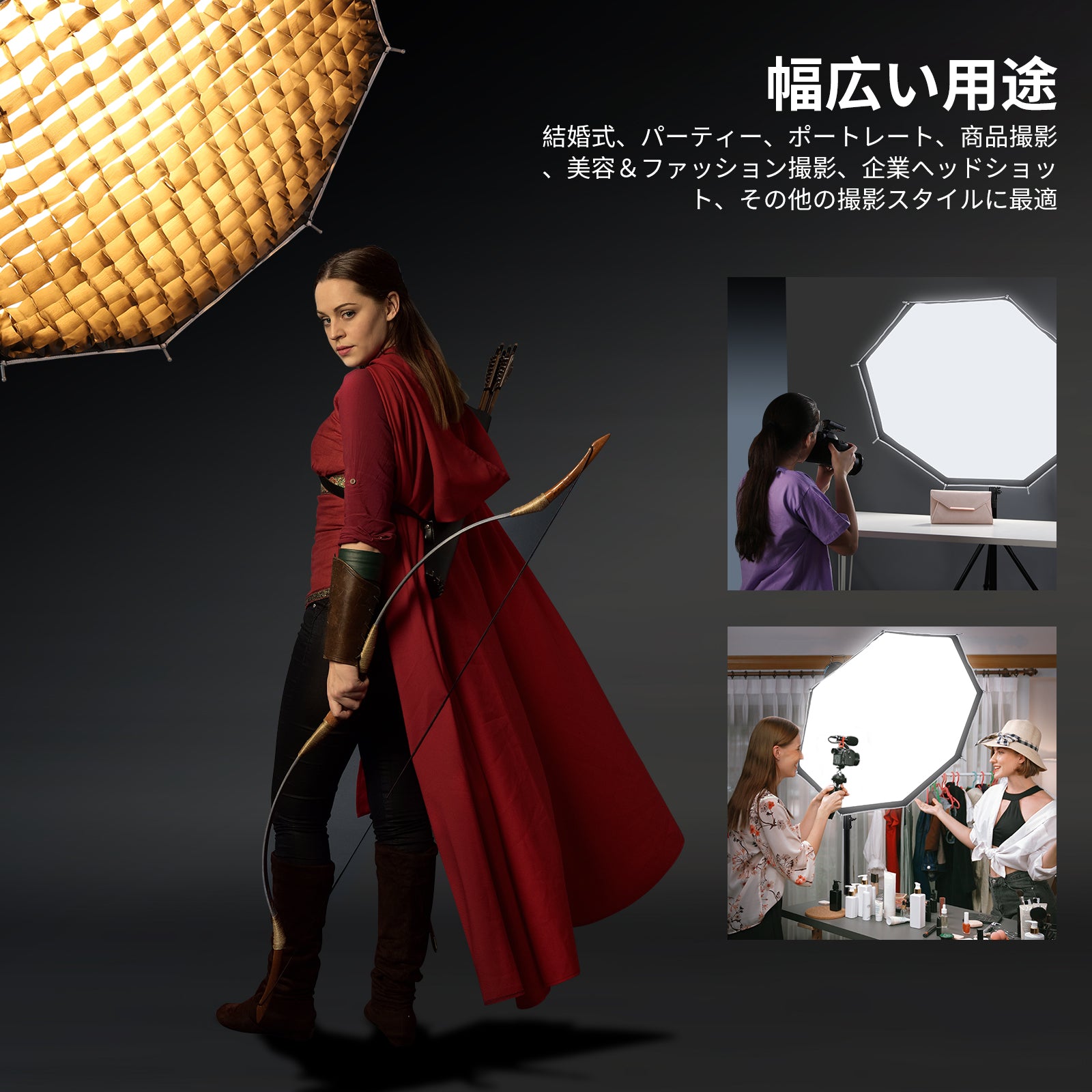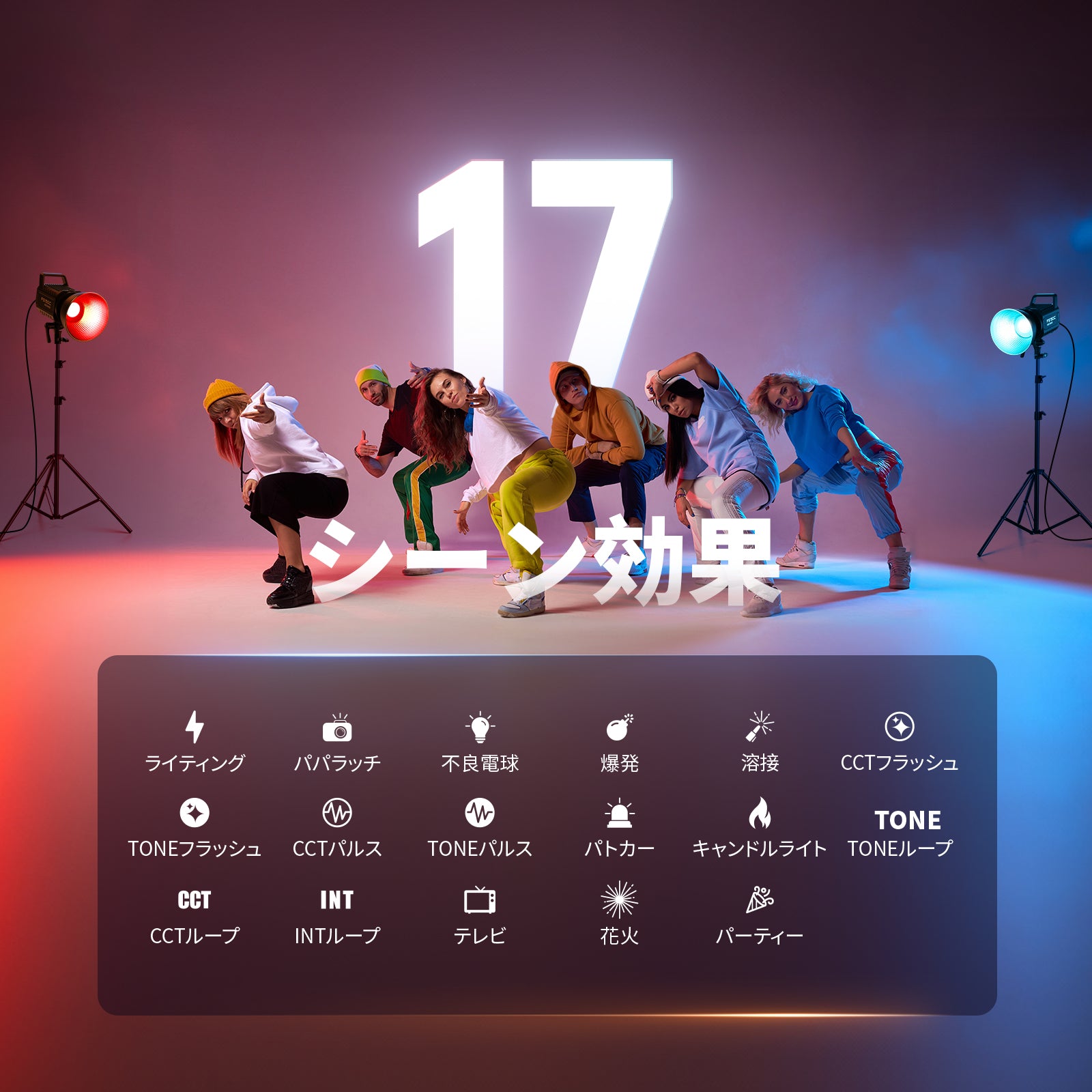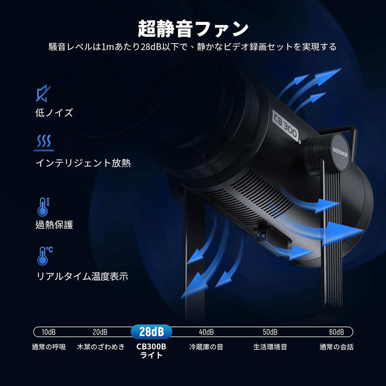 3200K~5600Kの色温度、0~100%の調光範囲、97+の高いCRI、21Wの電力、105個の暖色LED、および105個の冷色 LED を備えています。YouTubeのビデオ録画、ビデオブログ、ゲーム、ライブストリーミング、ポートレート、製品の写真撮影に最適です。