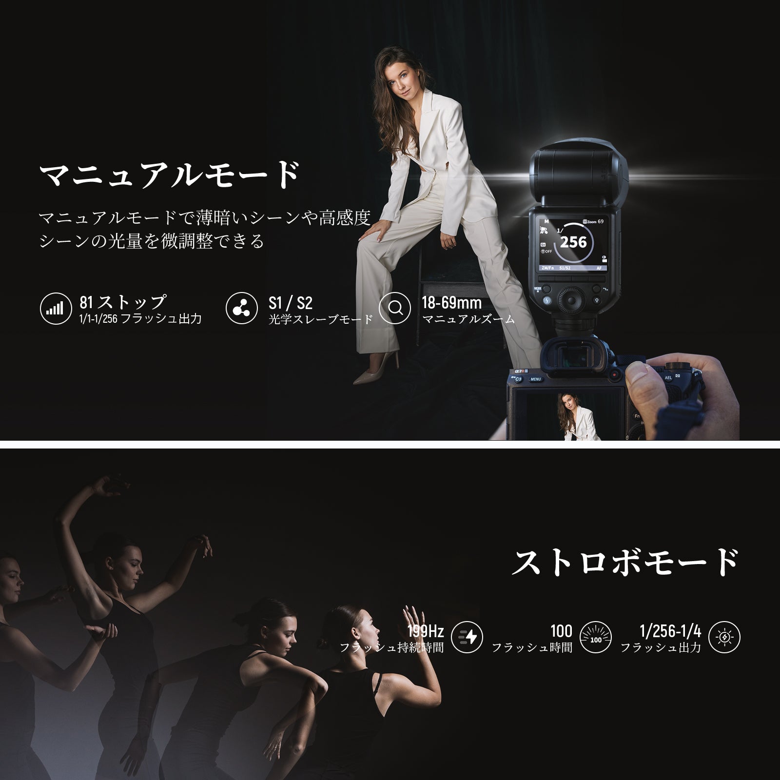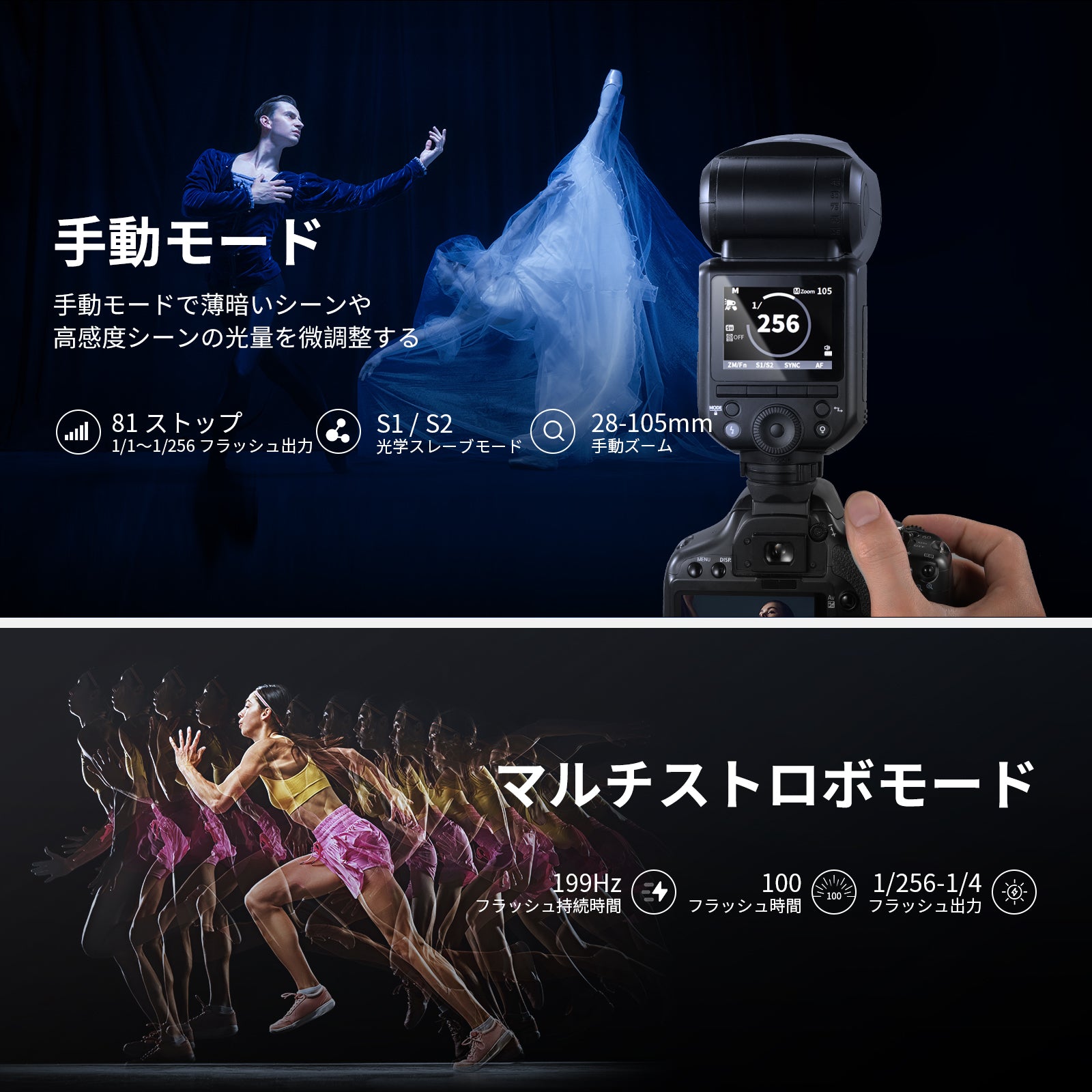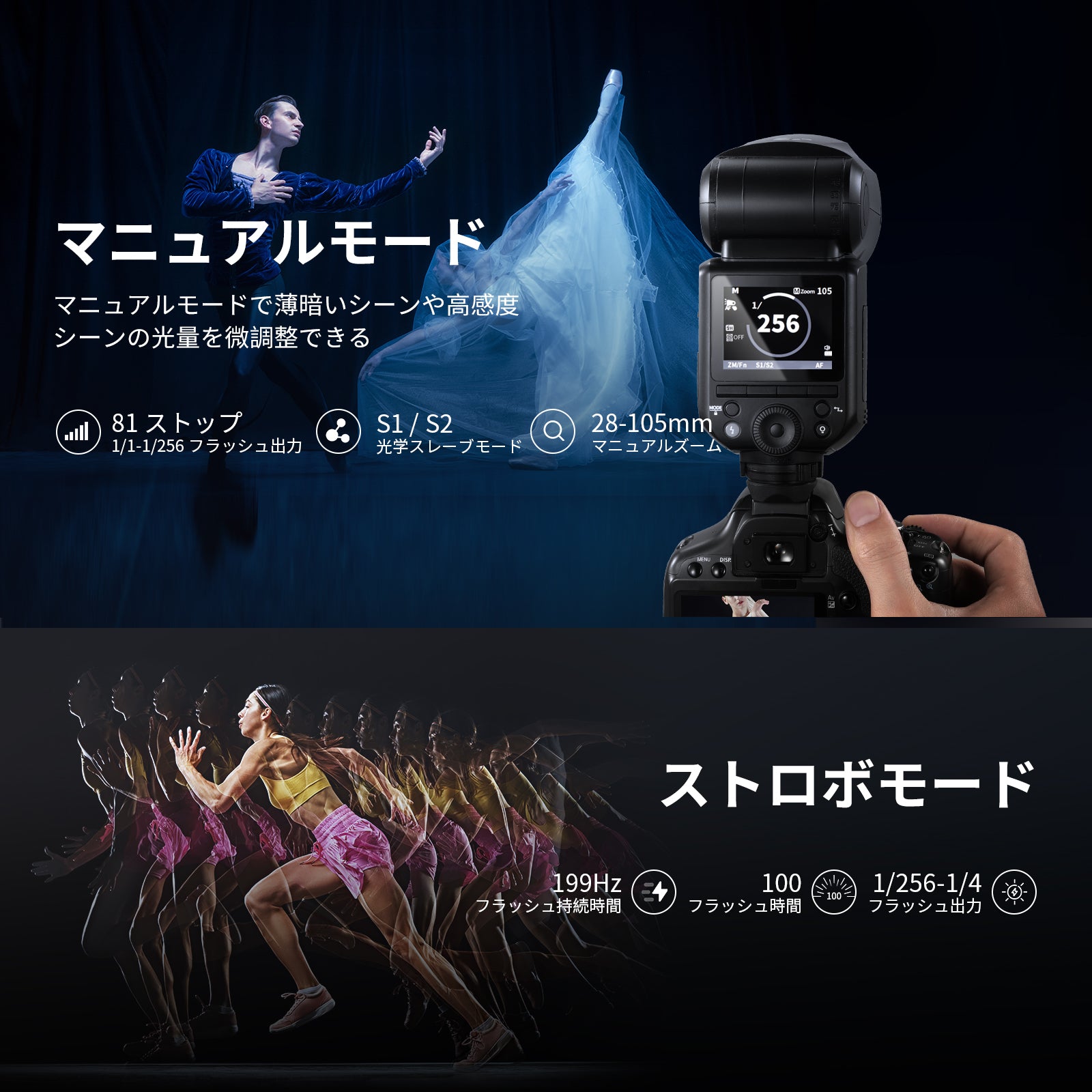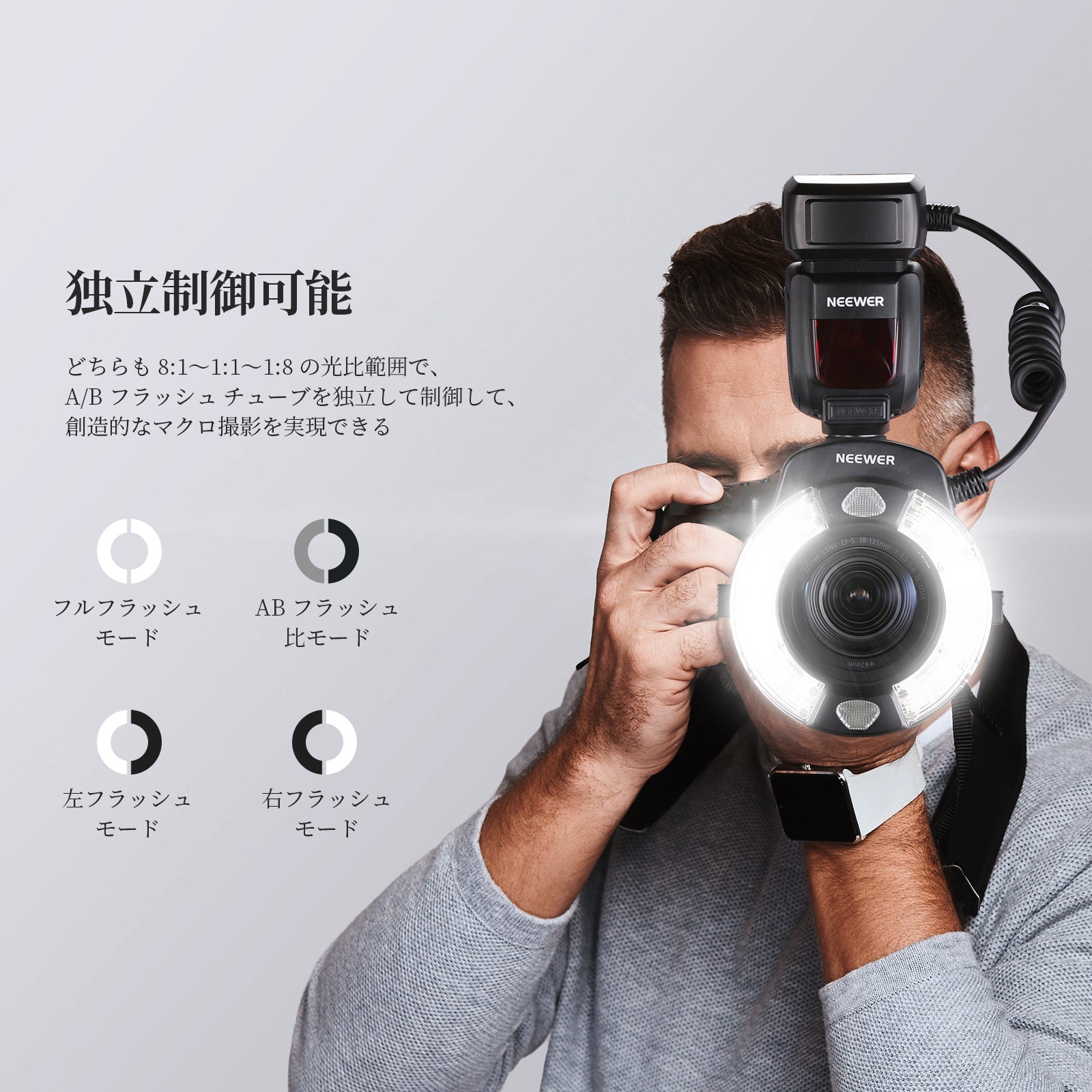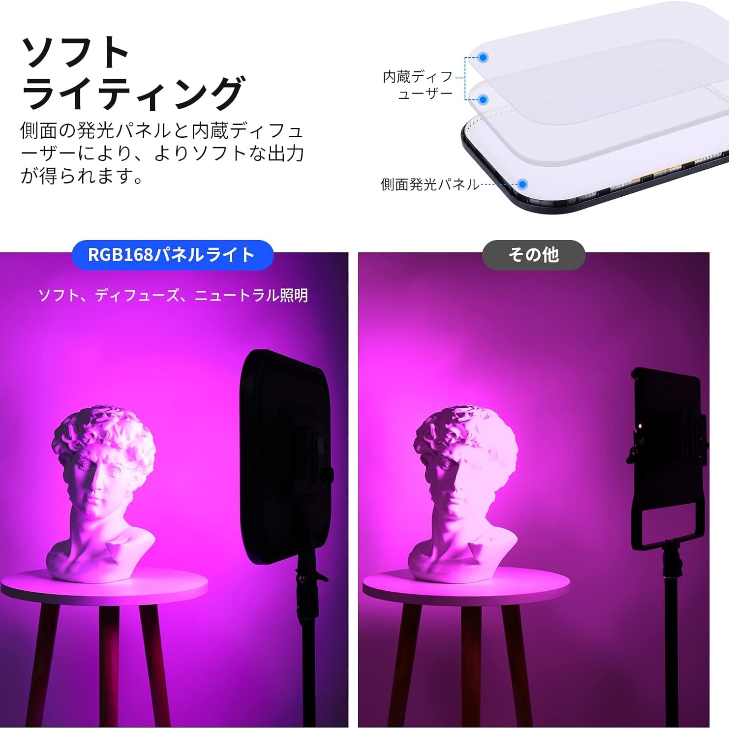 3200K~5600Kの色温度、0~100%の調光範囲、97+の高いCRI、21Wの電力、105個の暖色LED、および105個の冷色 LED を備えています。YouTubeのビデオ録画、ビデオブログ、ゲーム、ライブストリーミング、ポートレート、製品の写真撮影に最適です。