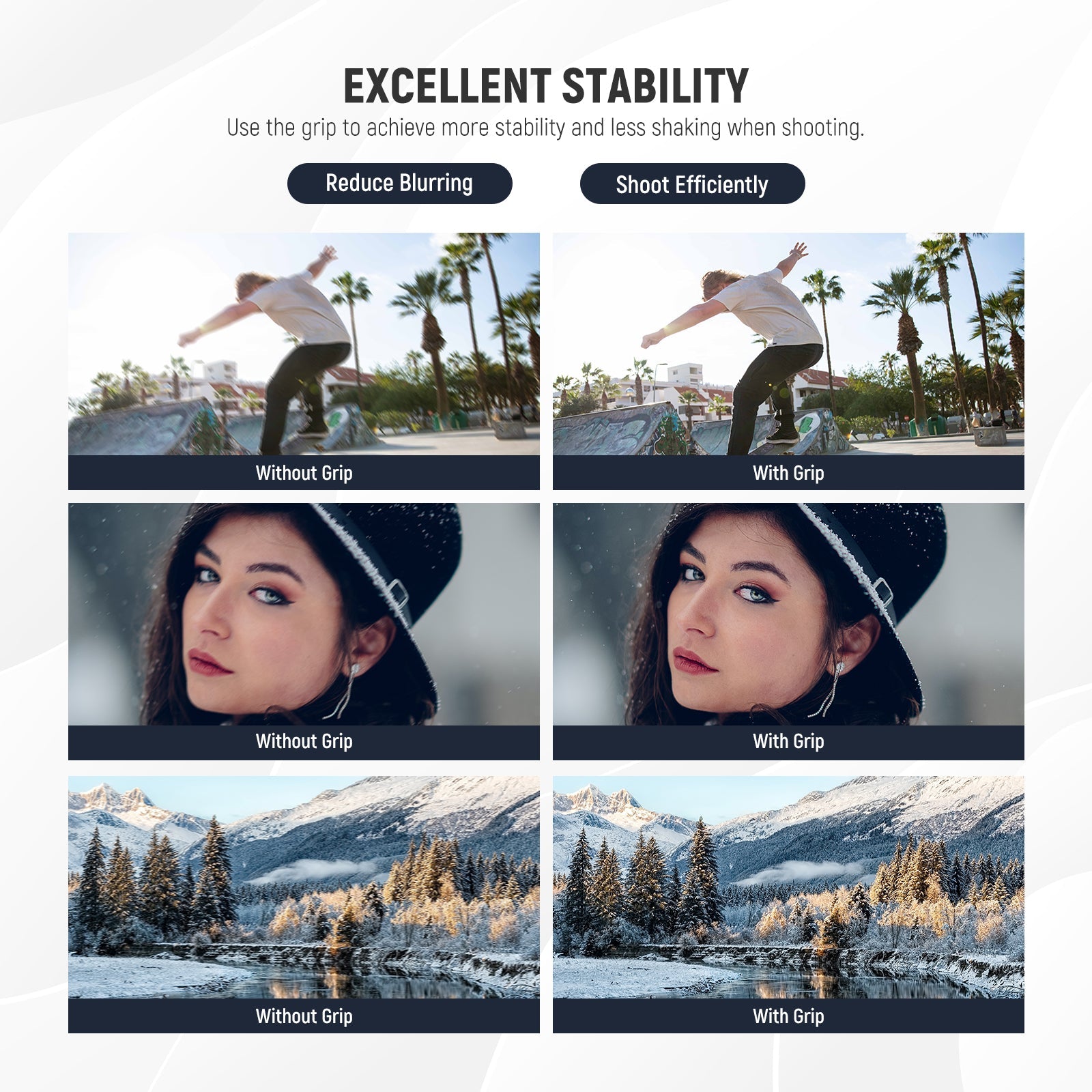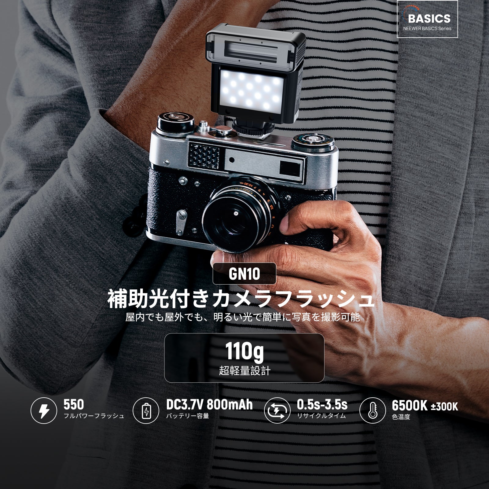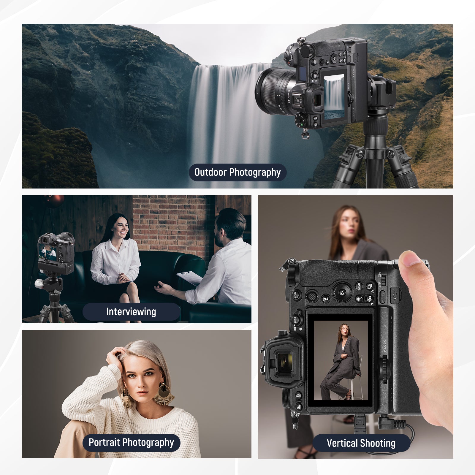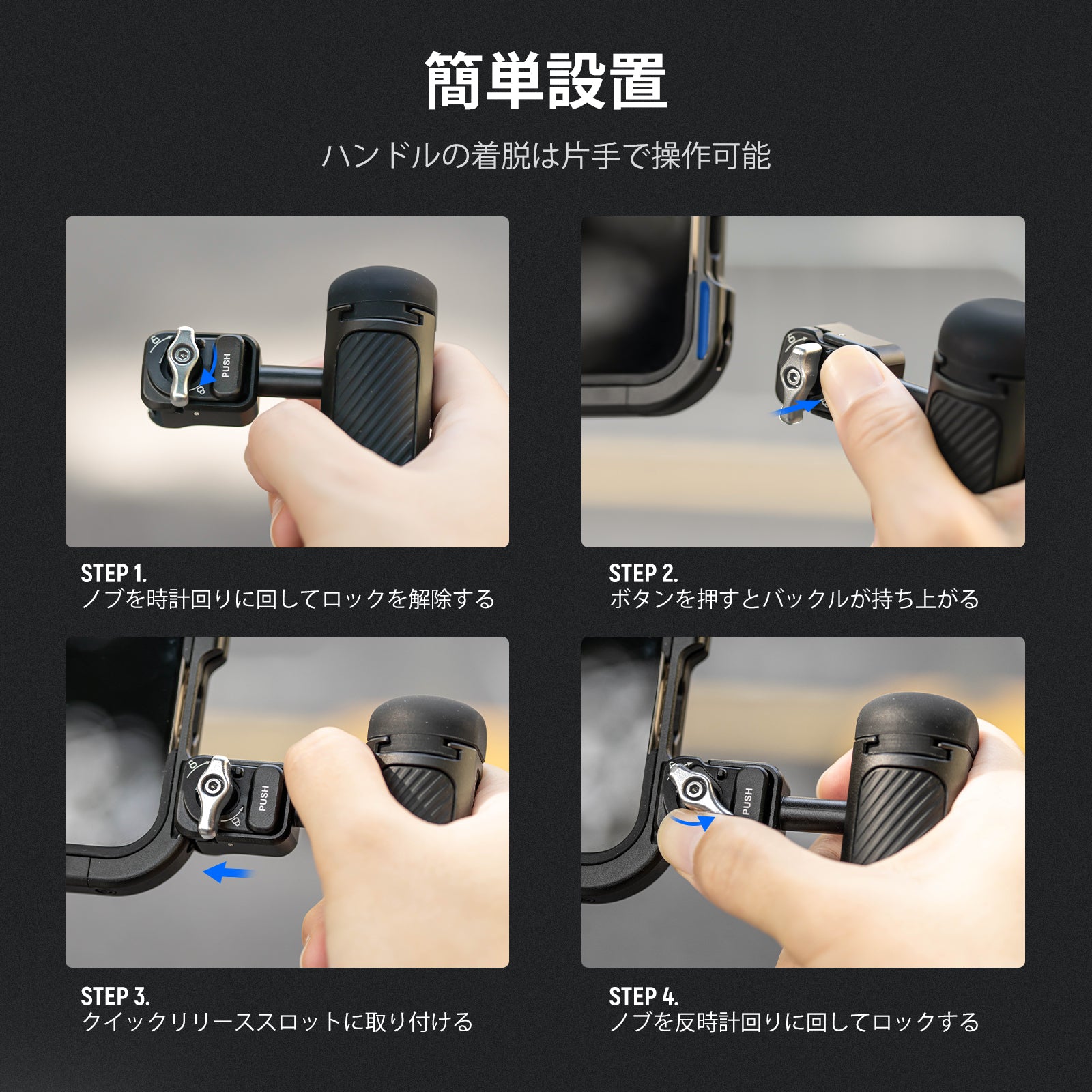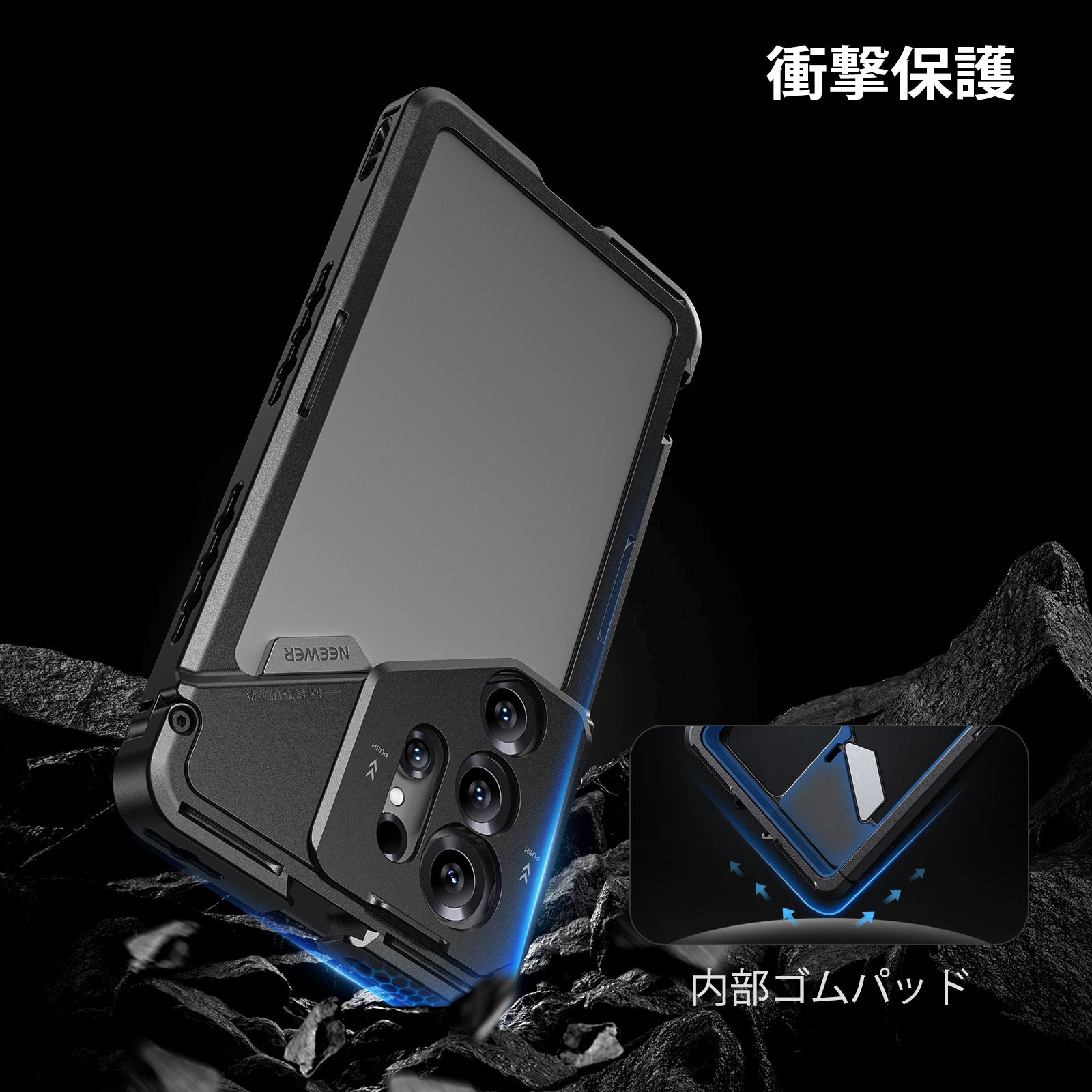 耐衝撃性のあるラバーライニングでスマートフォンを保護しながら、動画撮影、YouTube/TikTokのVlog、ライブ配信、モバイル写真撮影、映画制作などに活躍します。また、フィルターやレンズを装着できる交換式バックプレートが3枚付属しており、無限のクリエイティビティを実現します。