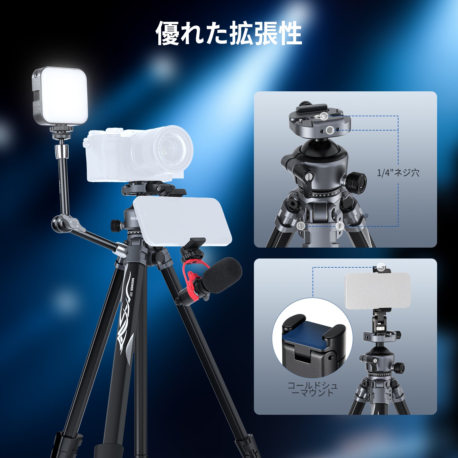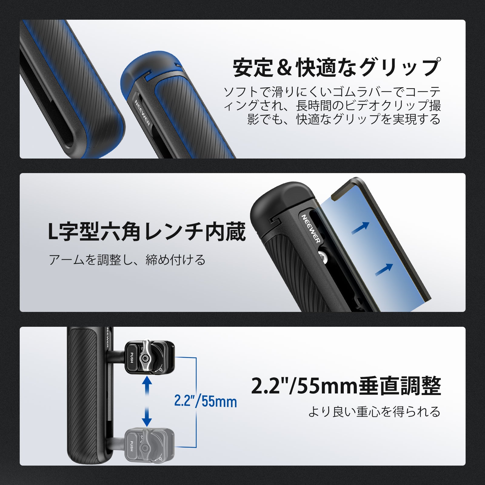 様々なアタッチメントを備えた機能的なスマホケージ&リグとなり、スマホで本格的な動画撮影をしたいならNEEWERは間違いなくお勧めです!